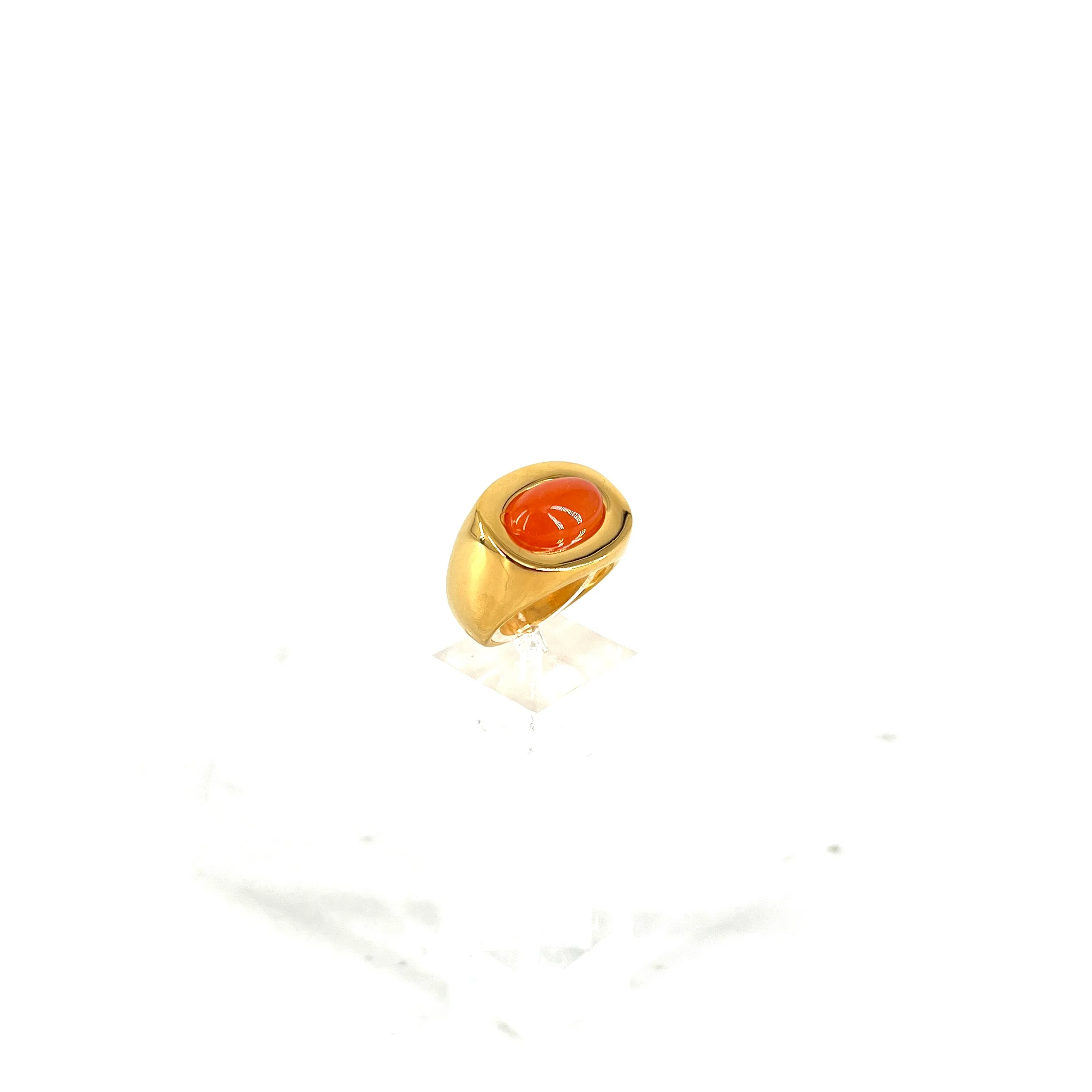 Large Bague Ovale en Plaqué Or et Cabochon Mandarine