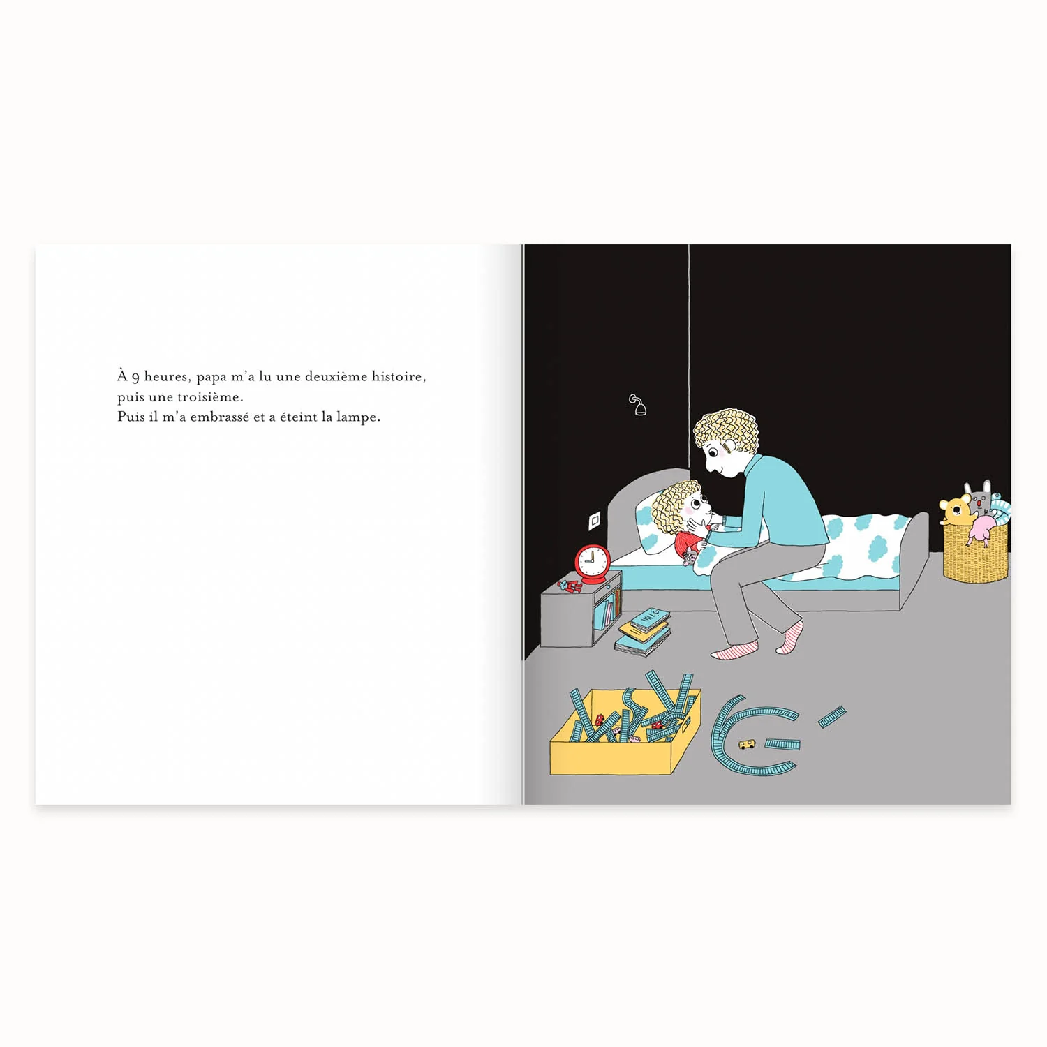 « À 8 h et demi, Maman a terminé l’histoire du soir. “Au lit mon Archibald”, m’a-t-elle dit en m’embrassant. J’ai répondu “oui, oui, Maman chérie” et j’ai sorti mon train. »