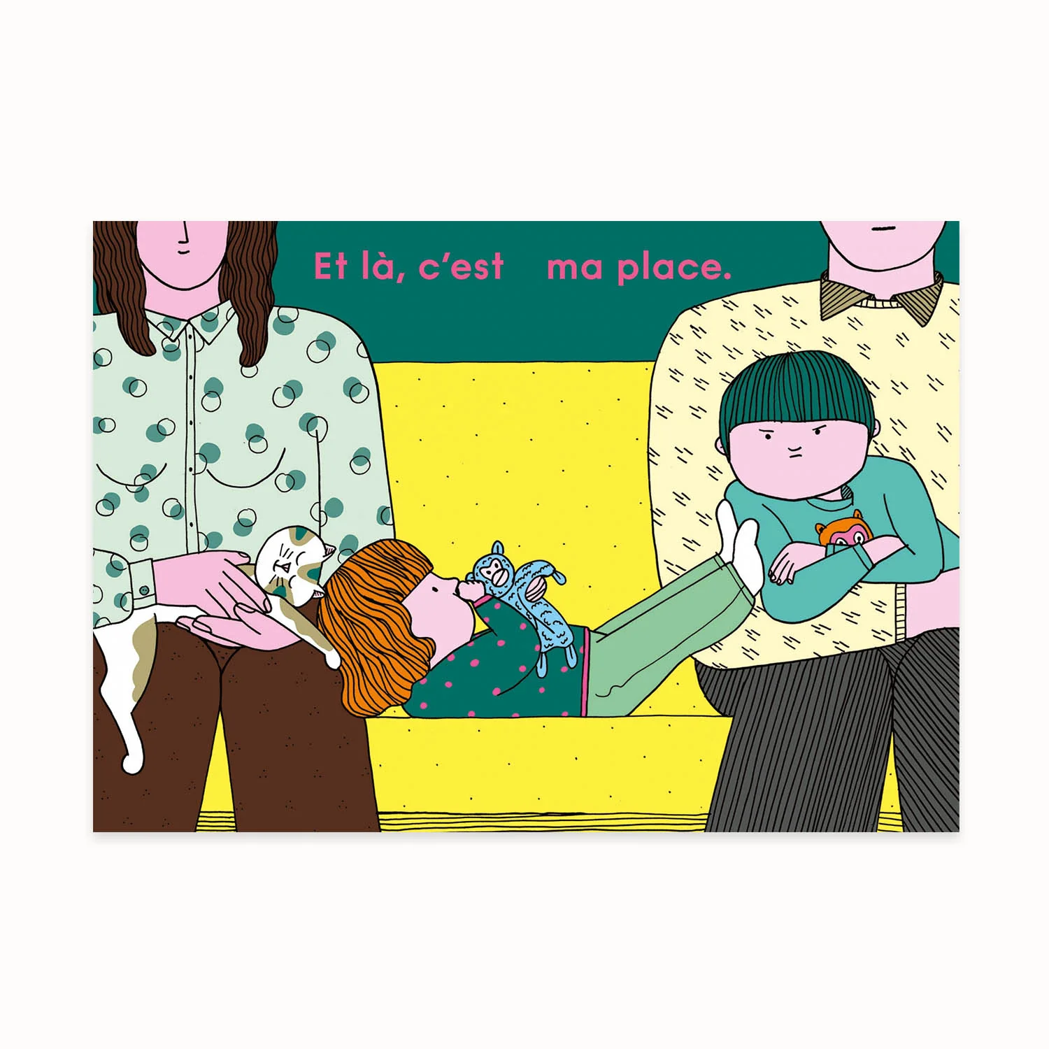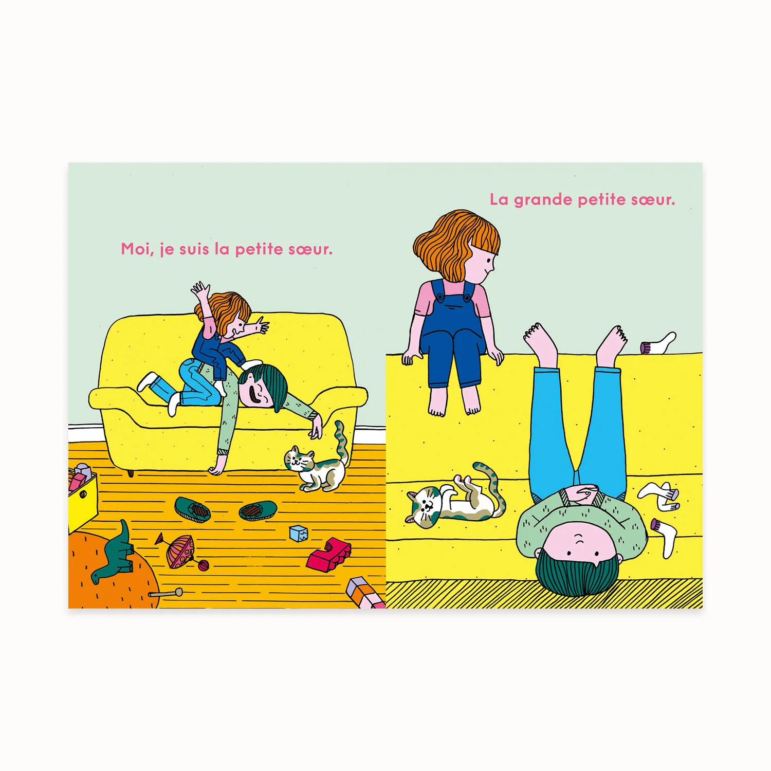 Après l’expérience de la maternité, l’arrivée du second enfant et le lien fraternel, Aurore Petit continue son travail autobiographie et se concentre, cette fois, sur sa « petite grande fille ». Avec son regard tendre, Aurore Petit décrit ce moment délicat où les enfants gagnent en indépendance et repoussent toujours plus loin les limites pour explorer le monde qui les entoure. La conscience de soi, l’opposition et l’affirmation de ses capacités et de sa personnalité poussent la petite fille à revendiquer sa place et son autonomie. GRANDE ! Vraiment ? Car, représenté hors champ, l’adulte est toujours présent pour l’entourer et l’accompagner sur ce chemin.