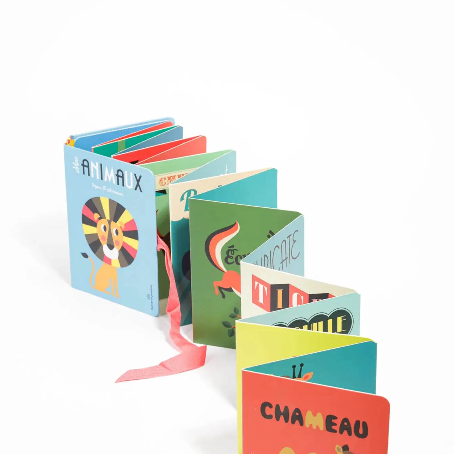 Ce mini-livre accordéon illustré par Ingela P. Arrhenius de chez Marcel et Joachim présente plus de 30 animaux joyeux — zèbre, girafe, flamant rose et bien d’autres. Son format original se déploie pour une longueur d’environ 2 m, transformant chaque moment de lecture en une aventure visuelle à partager.