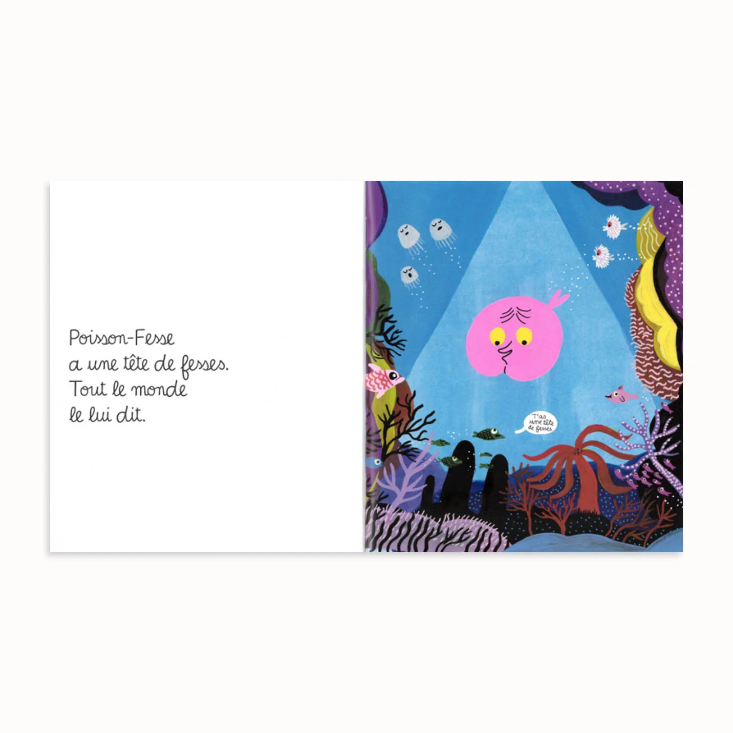 Poisson-Fesse a une tête de fesses. Tout le monde lui dit. Mais une tête de fesses ressemble finalement beaucoup à une tête de coeur… Il suffit de regarder la vie du bon côté pour le découvrir !