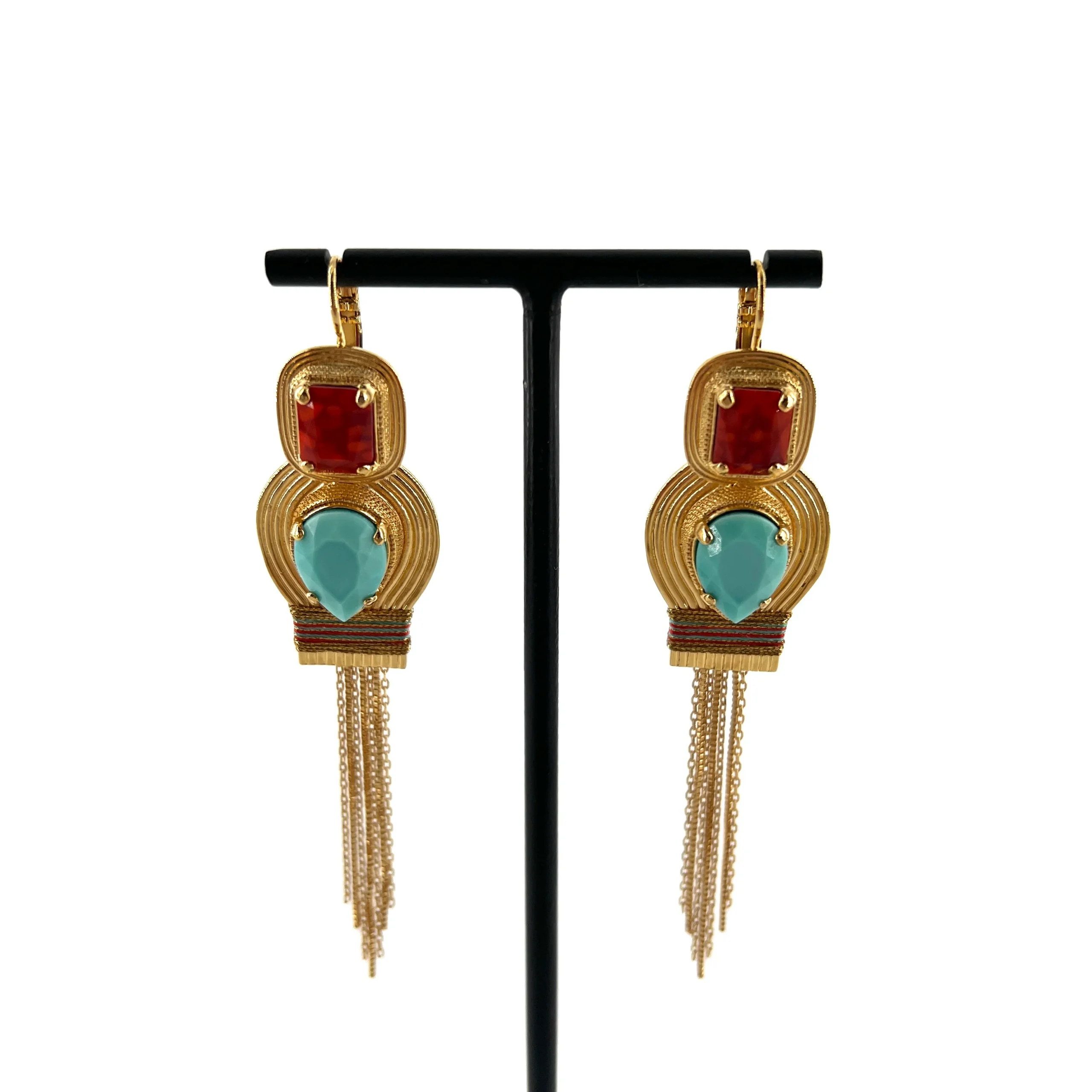 Longue Boucle d’Oreille SOLEIL en Turquoise et Corail