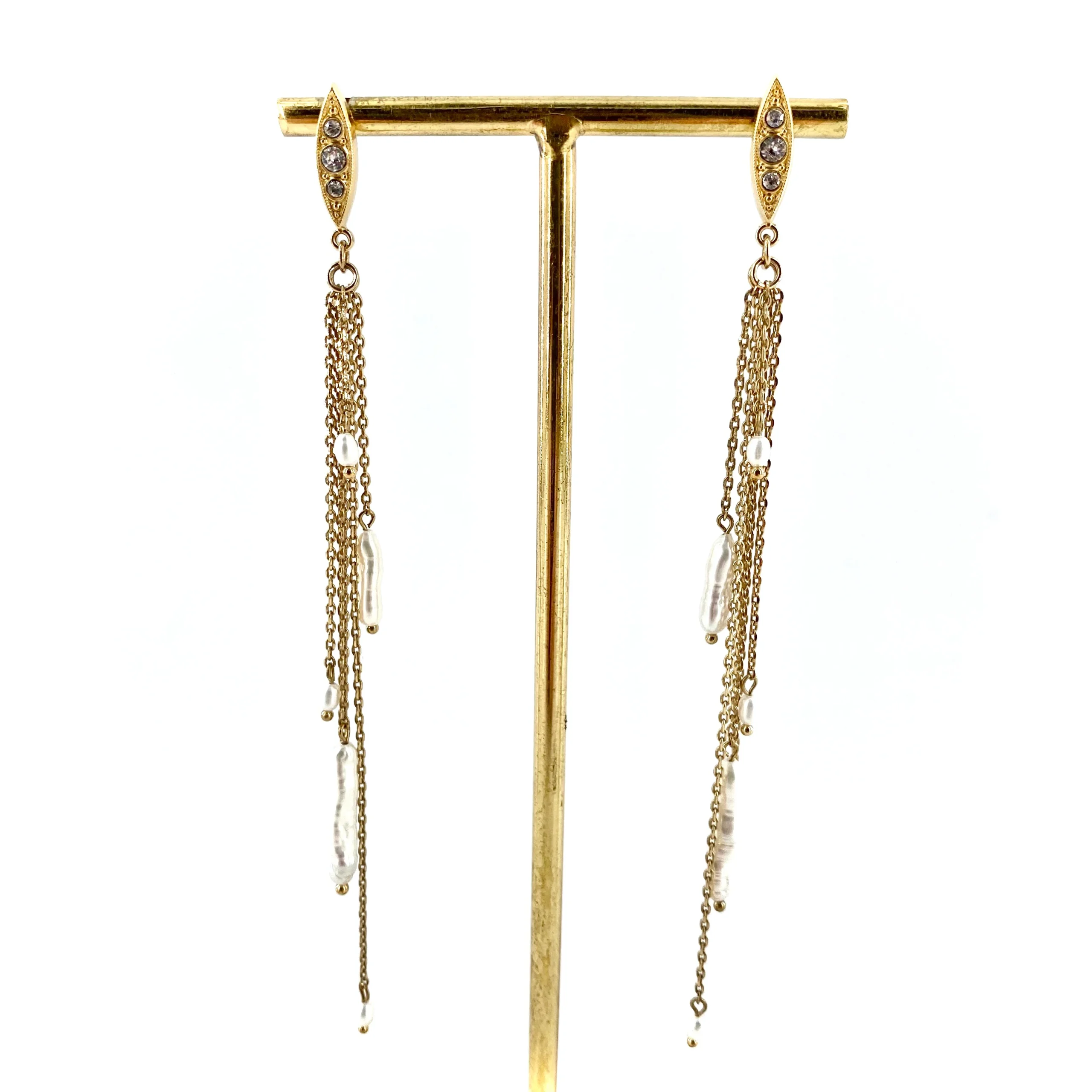 Montées sur une Puce sertie de trois Cristaux Gris, ces longues boucles sont à la fois élégantes et féminines.