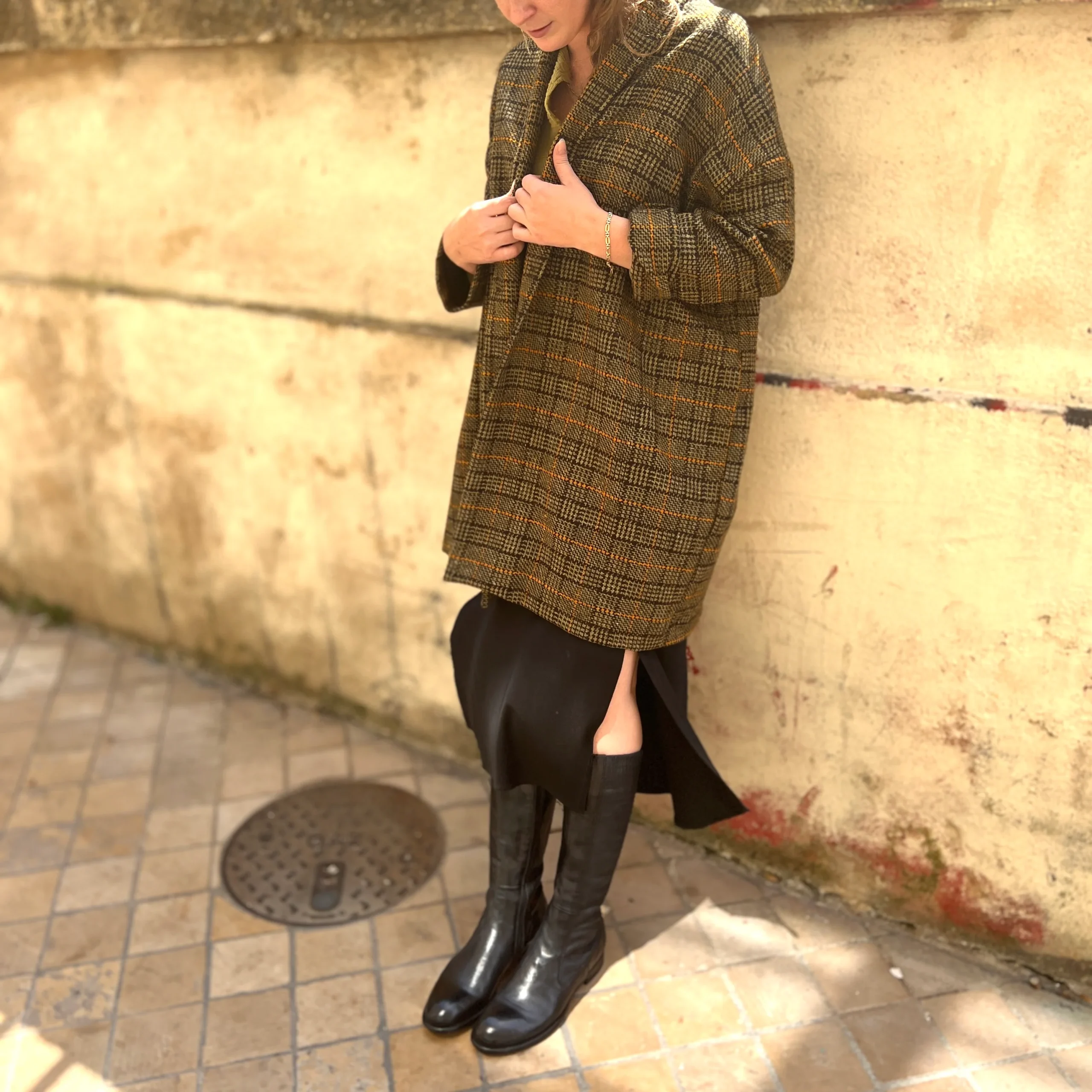 Manteau TOM à Carreaux Kaki et Orange