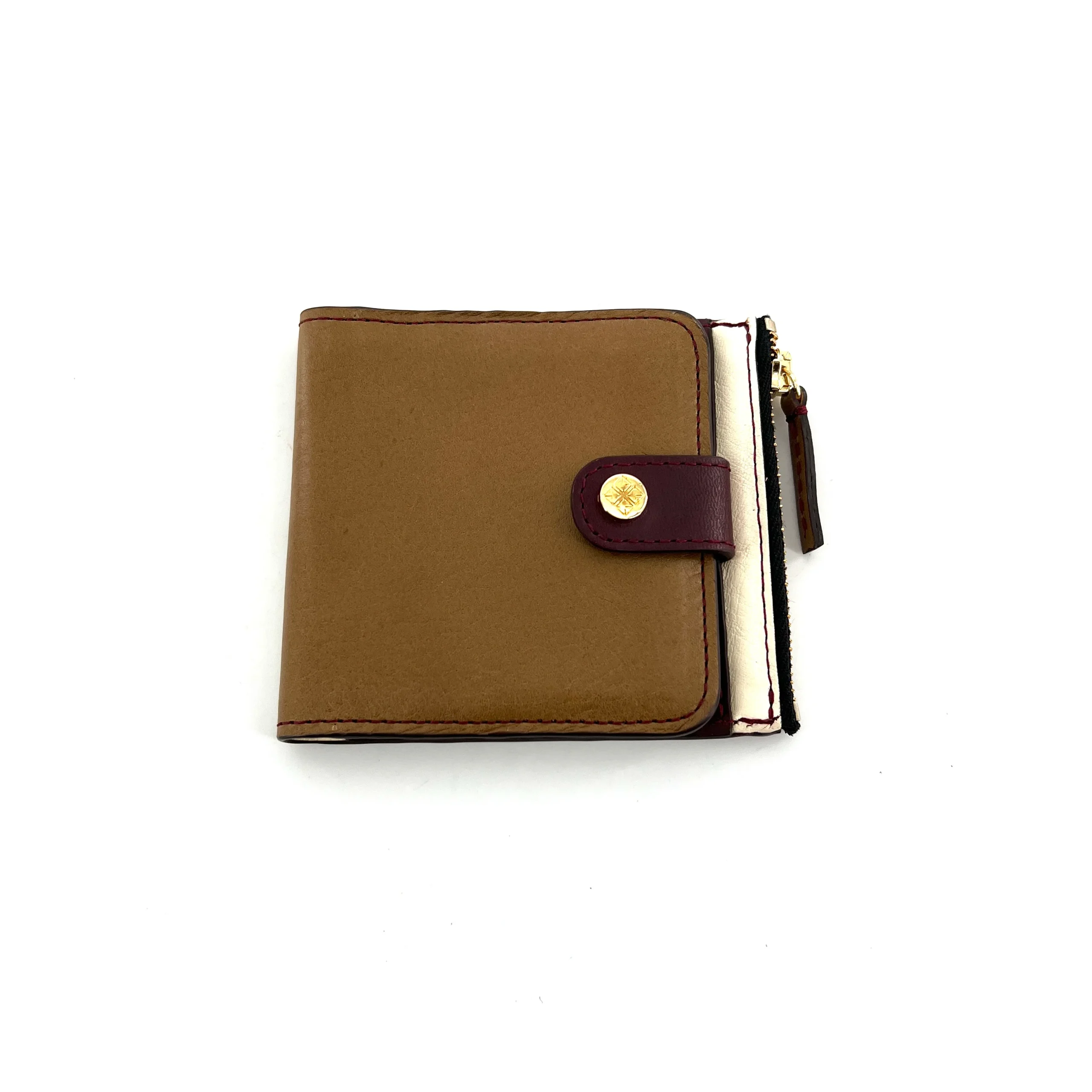 Mini Portefeuille PARIS-LISBONNE CLOWN en Cuir Bordeaux Crème et Bronze