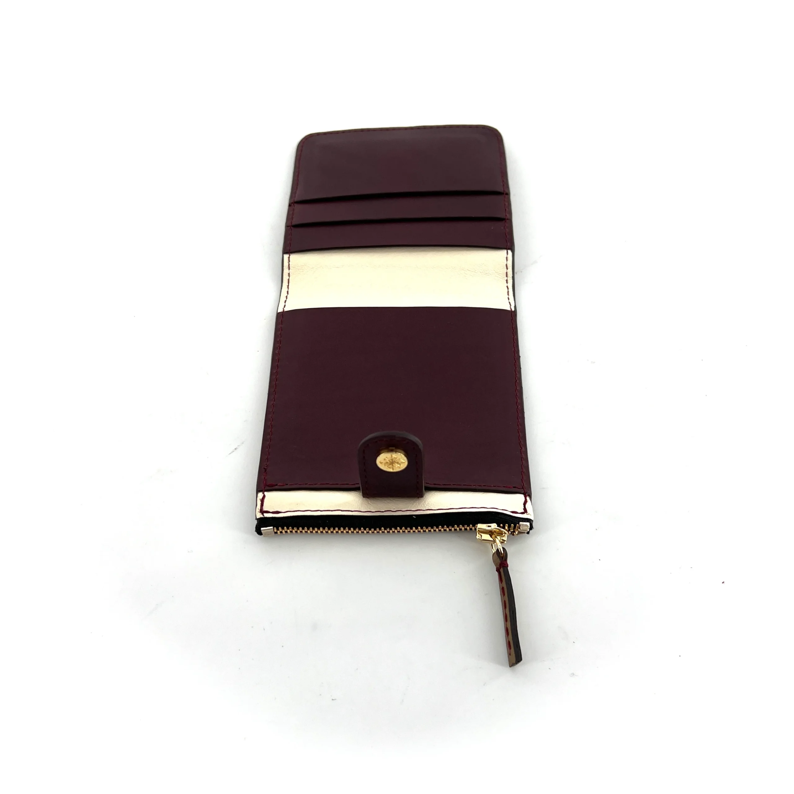 Soyez le premier à laisser votre avis sur “Mini Portefeuille PARIS-LISBONNE CLOWN en Cuir Bordeaux Crème et Bronze”