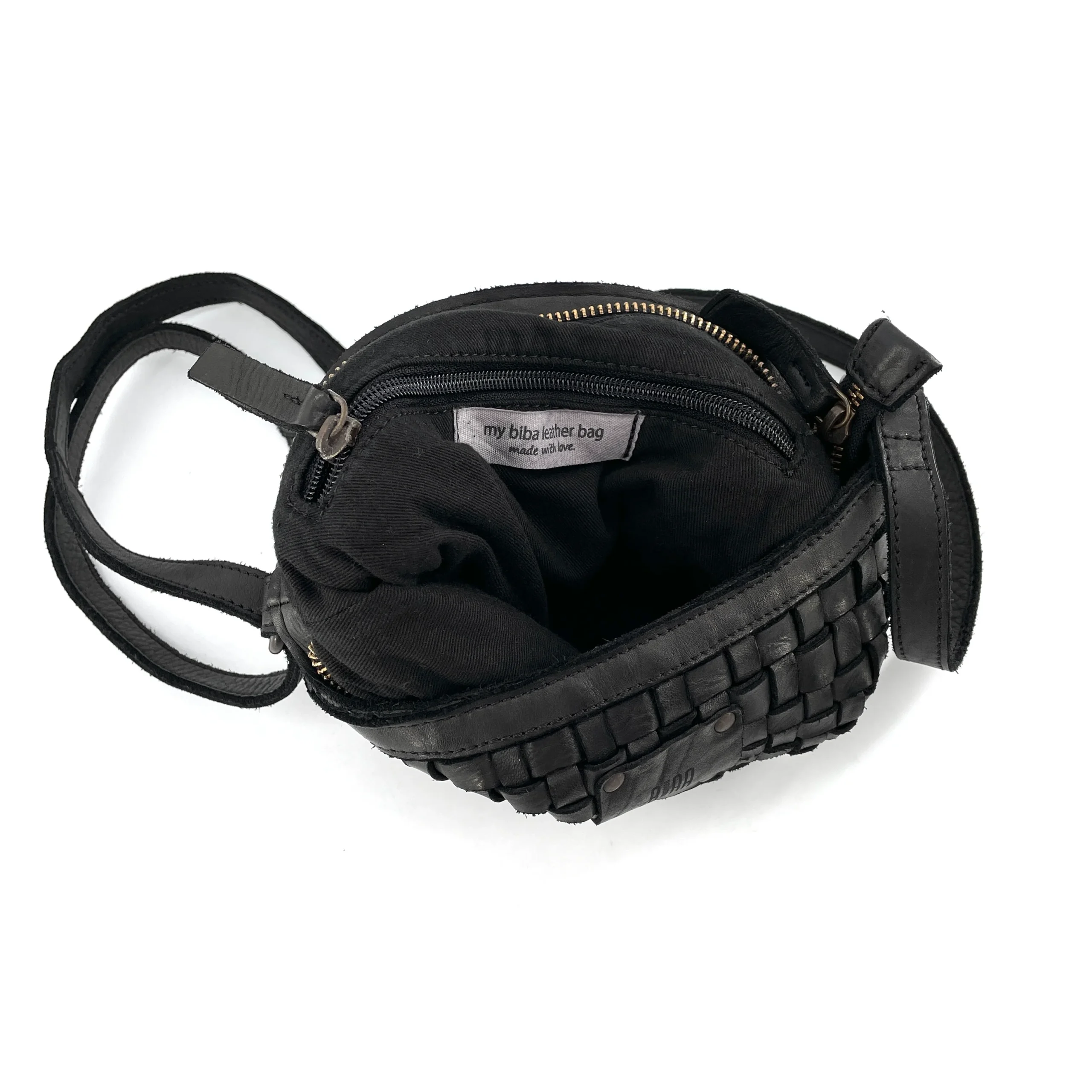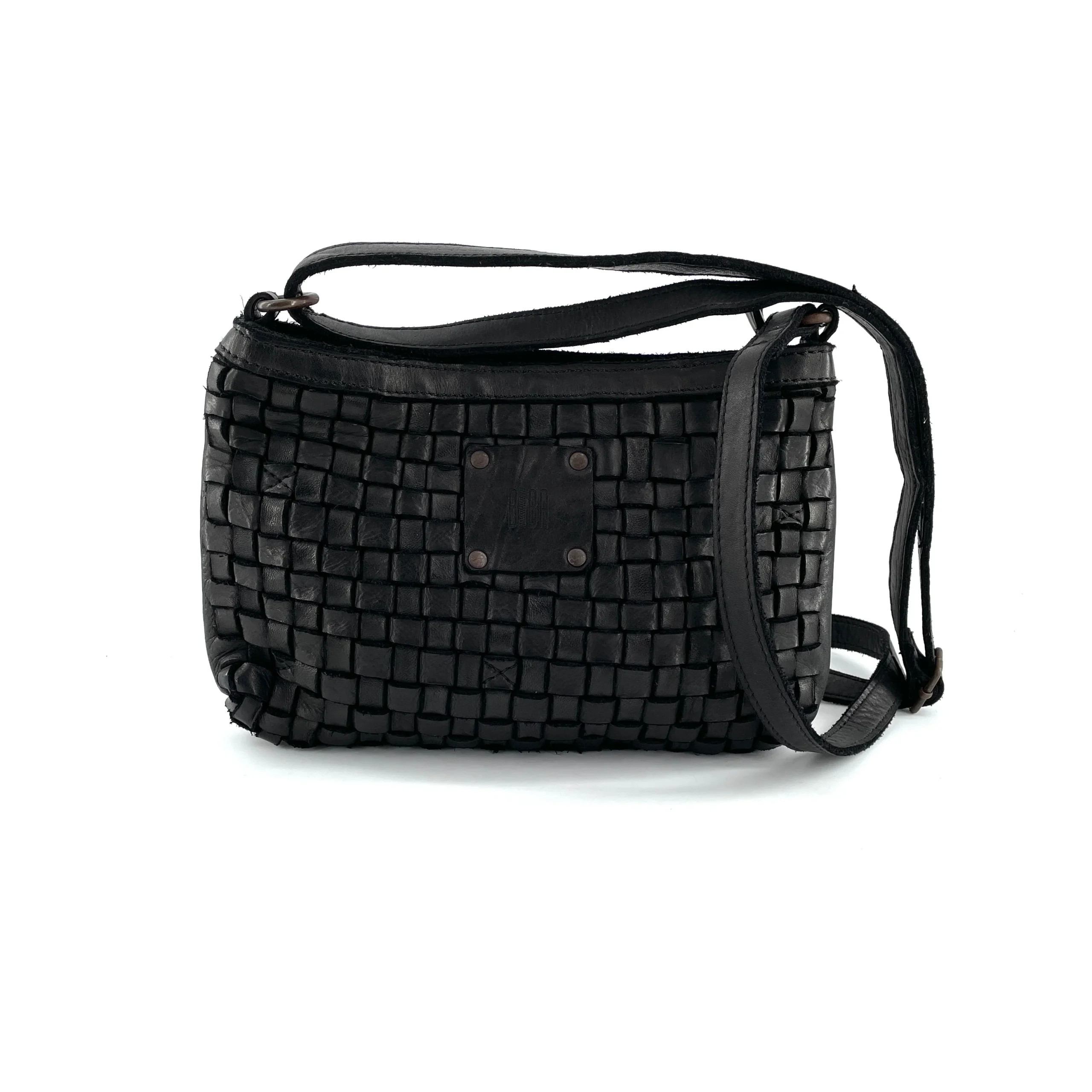 Mini-Sac Tressé en Cuir Noir Porté Travers