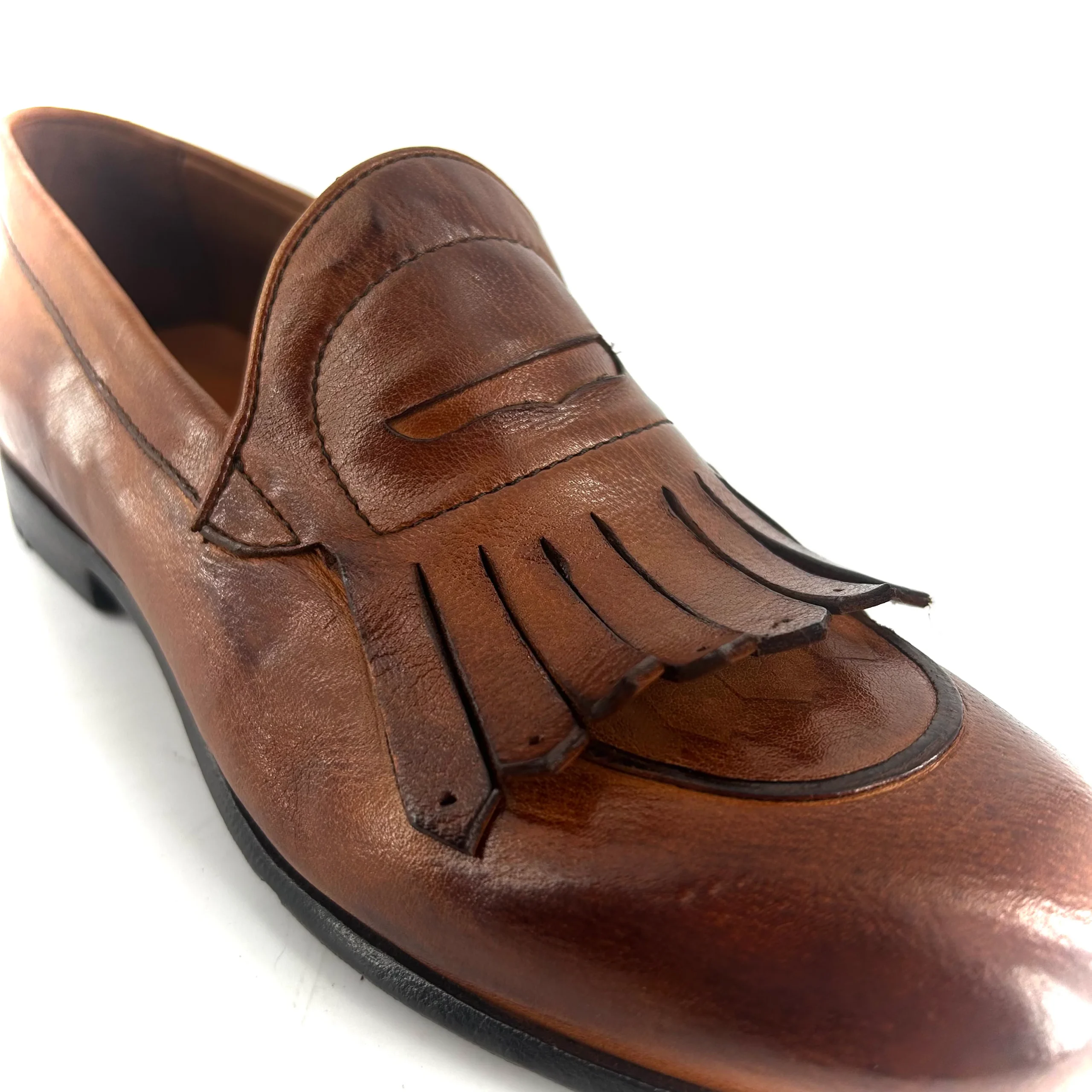 Mocassin Frangé en Cuir Lavé Cognac