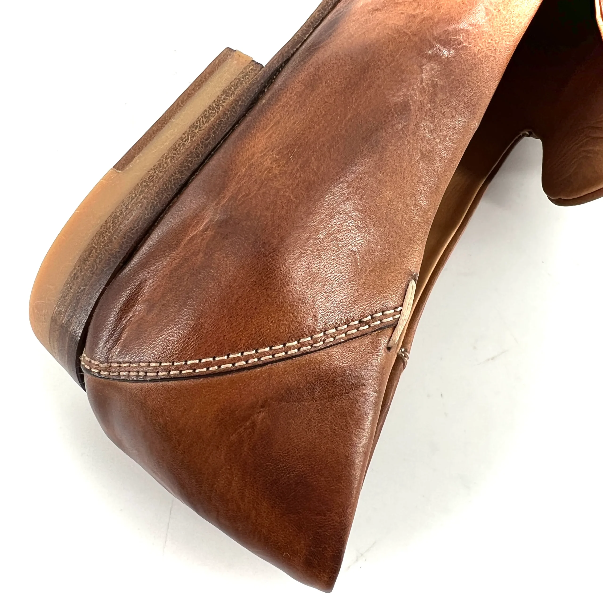 Mocassin à Pompons et Bout Fleuri en Cuir Marron
