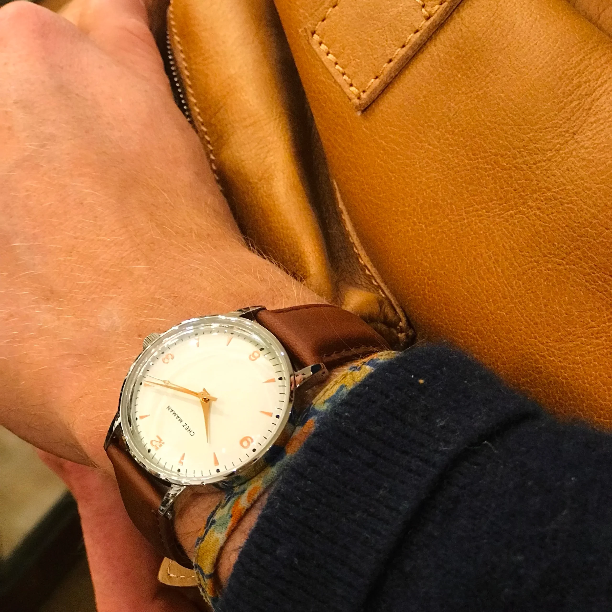 Cette montre, agrémentée d’un fond blanc, de chiffres et d’aiguilles dorés, est à la fois rétro, et intemporelle.
