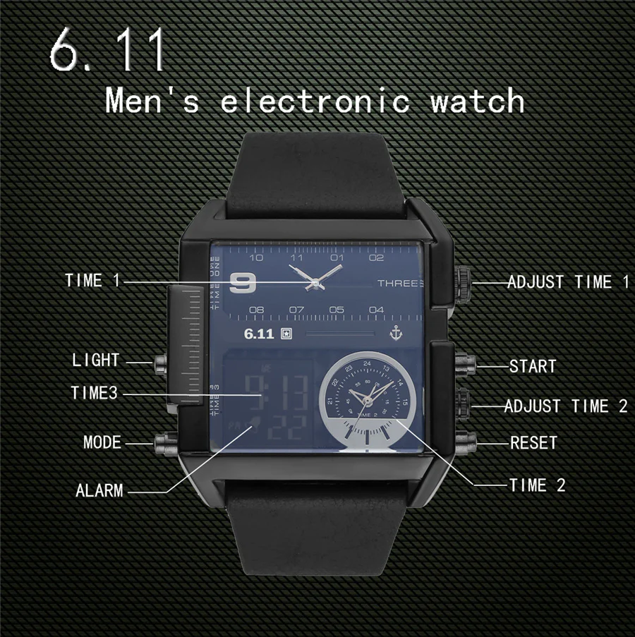 Montre Électronique Sport Carrée Étanche 50M – Double Affichage Multifonction
