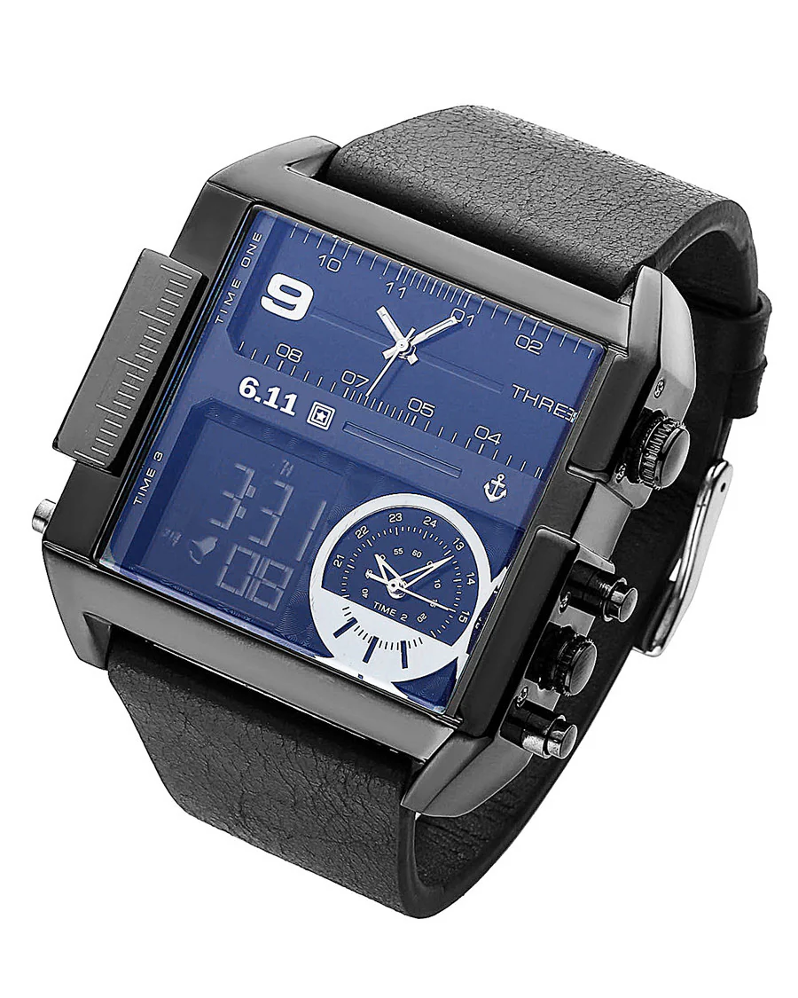 Montre Sport Homme Étanche 30M – Double Affichage LED Bracelet Cuir