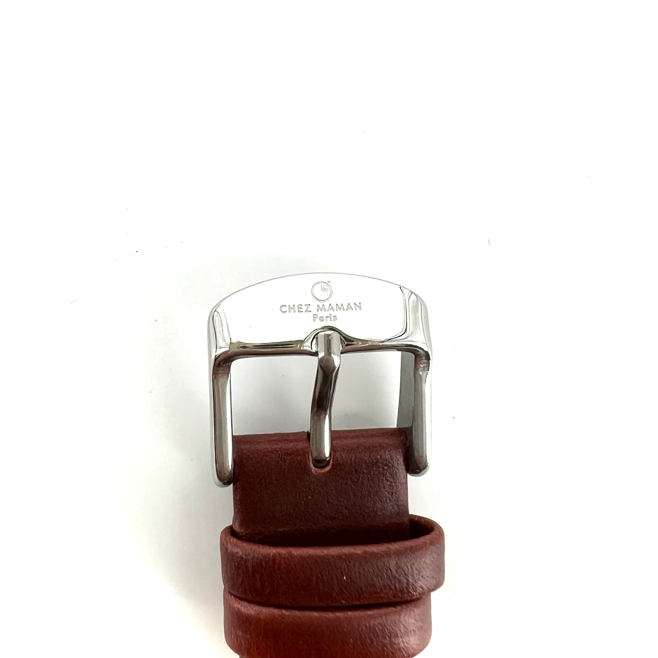 Bracelet cuir marron, boitier acier inoxydable silver.