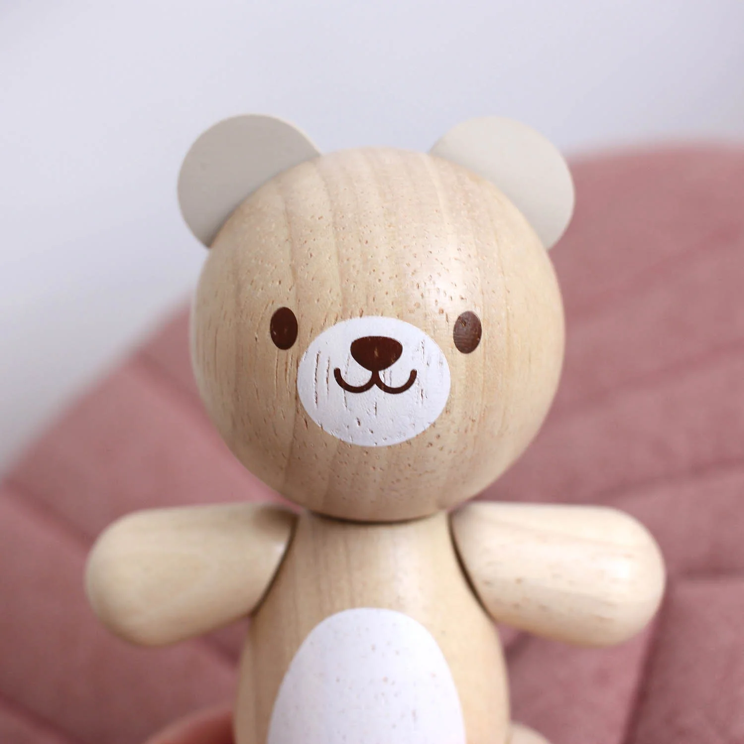 Cet adorable petit ourson deviendra le compagnon idéal de votre enfant. Il a été fabriqué avec une matière écologique composée de bois d’hévéa et d’élastiques. La peinture est non toxique et à base d’eau et de pigments naturels.