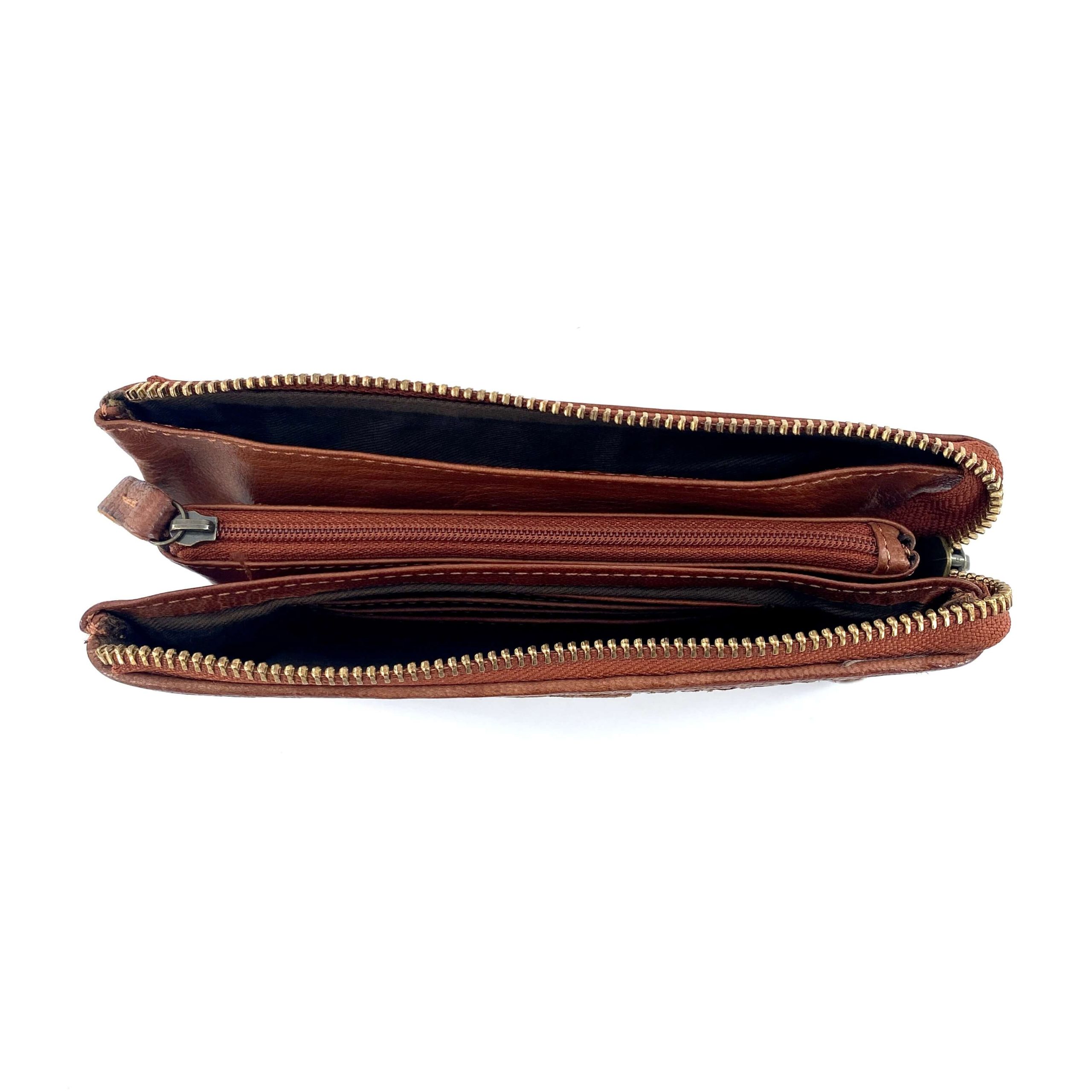 Pochette / Portefeuille en Cuir Tressé Camel