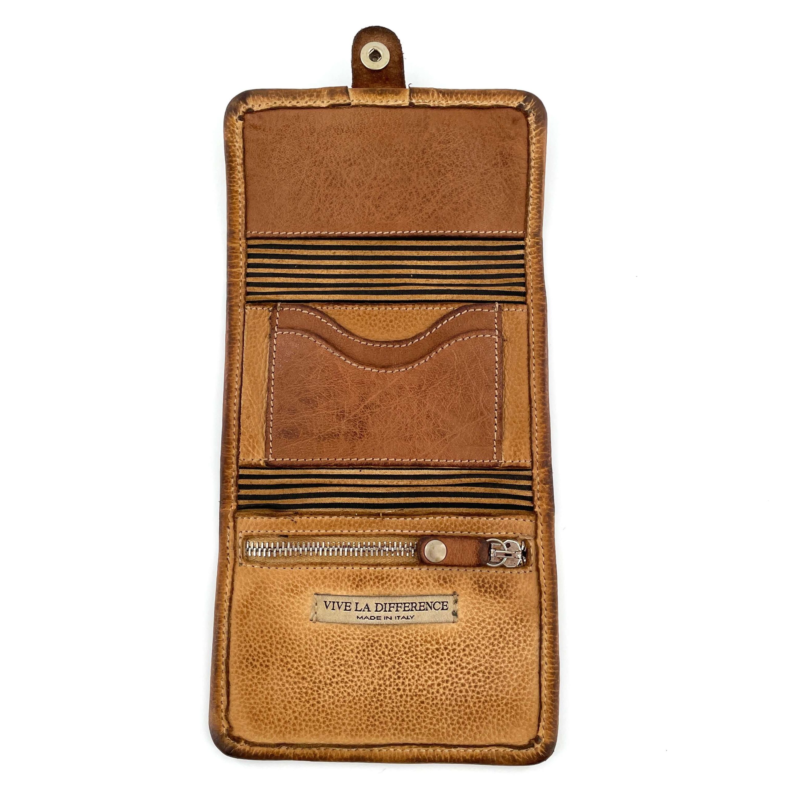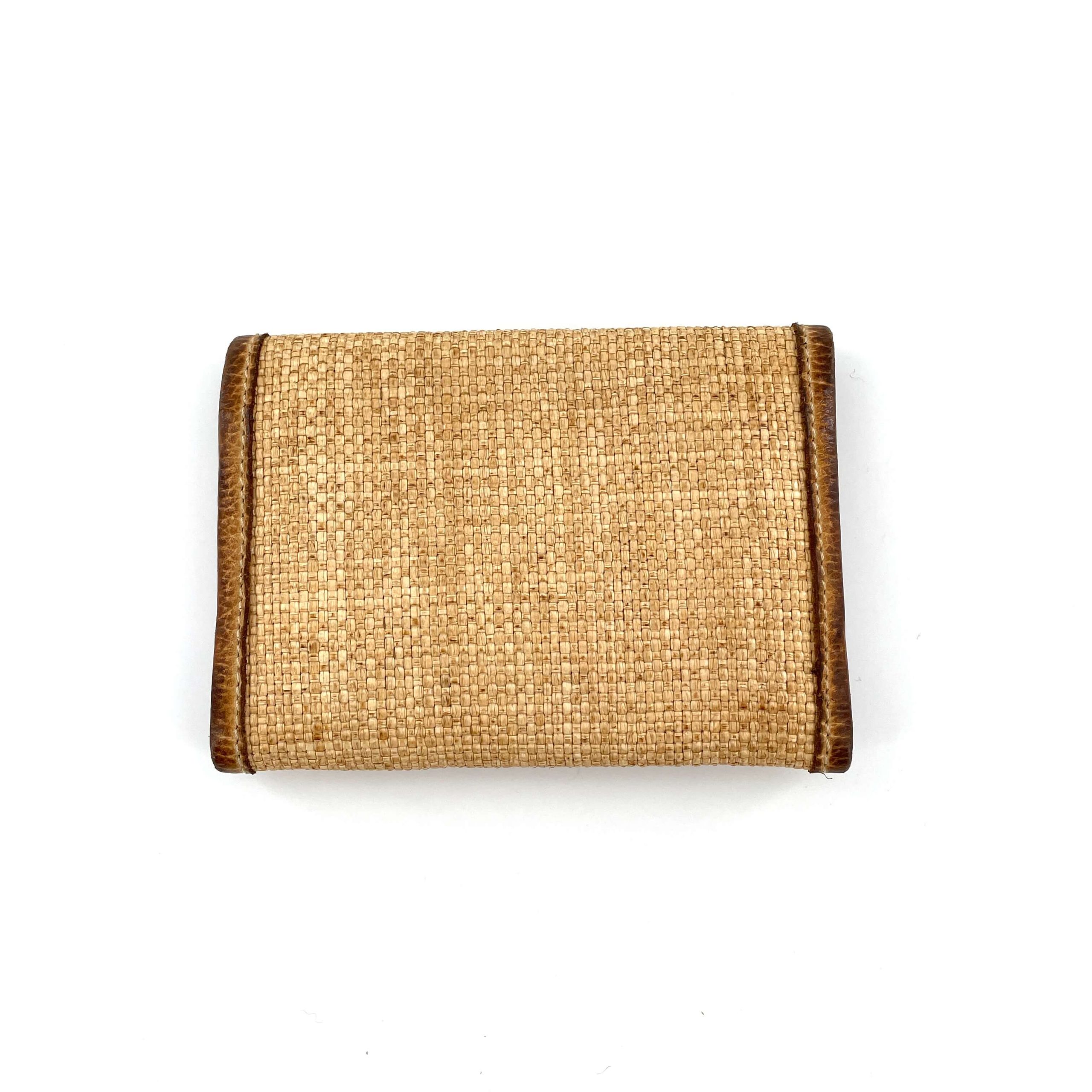 Superbe porte-cartes en Paille Enduite et Cuir Camel Lavé « Made in Italy ».