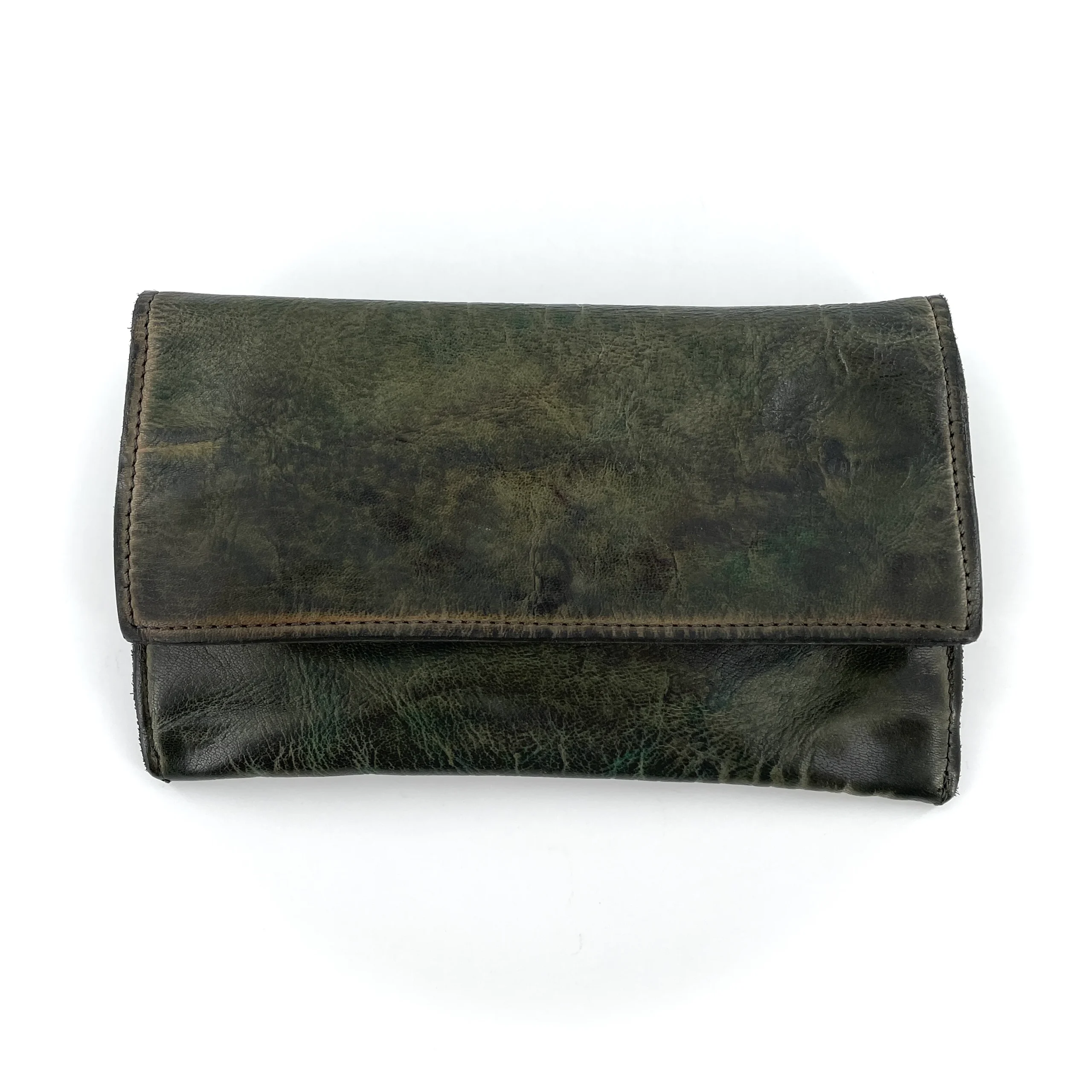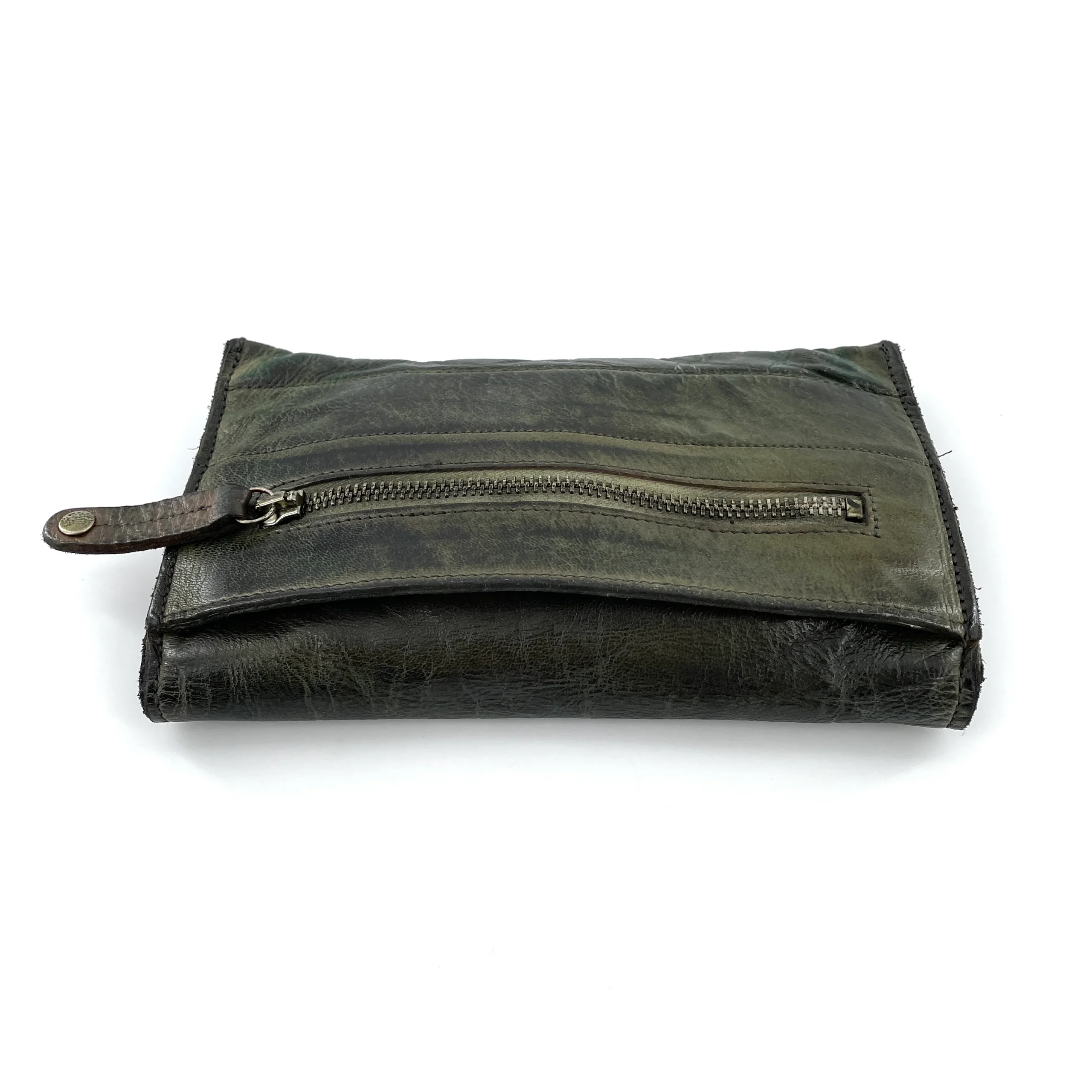 Superbe Portefeuille en Cuir Lavé Vert « Made in Italy ».