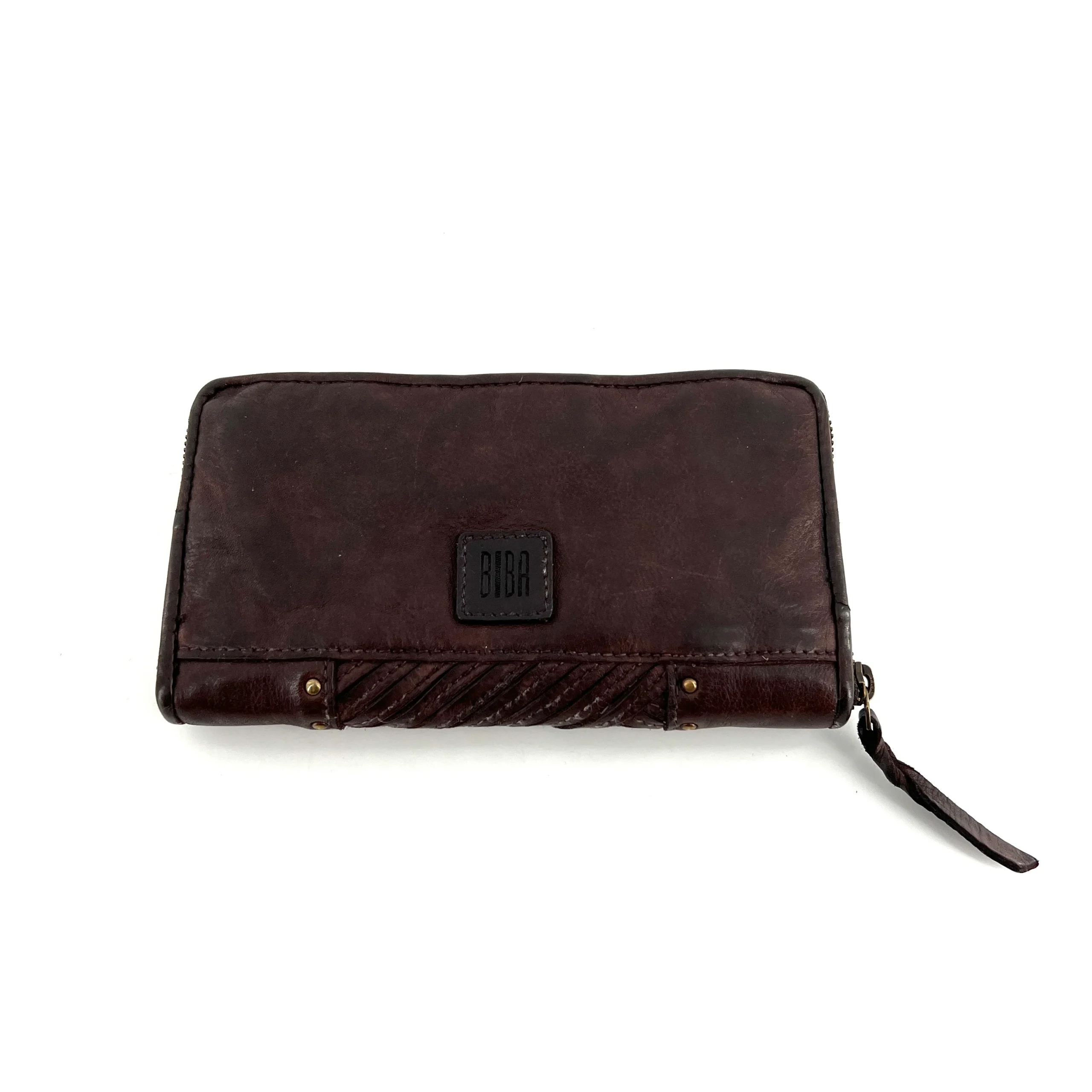 Portefeuille Patchwork de Cuir Marron Foncé et Clous Dorés