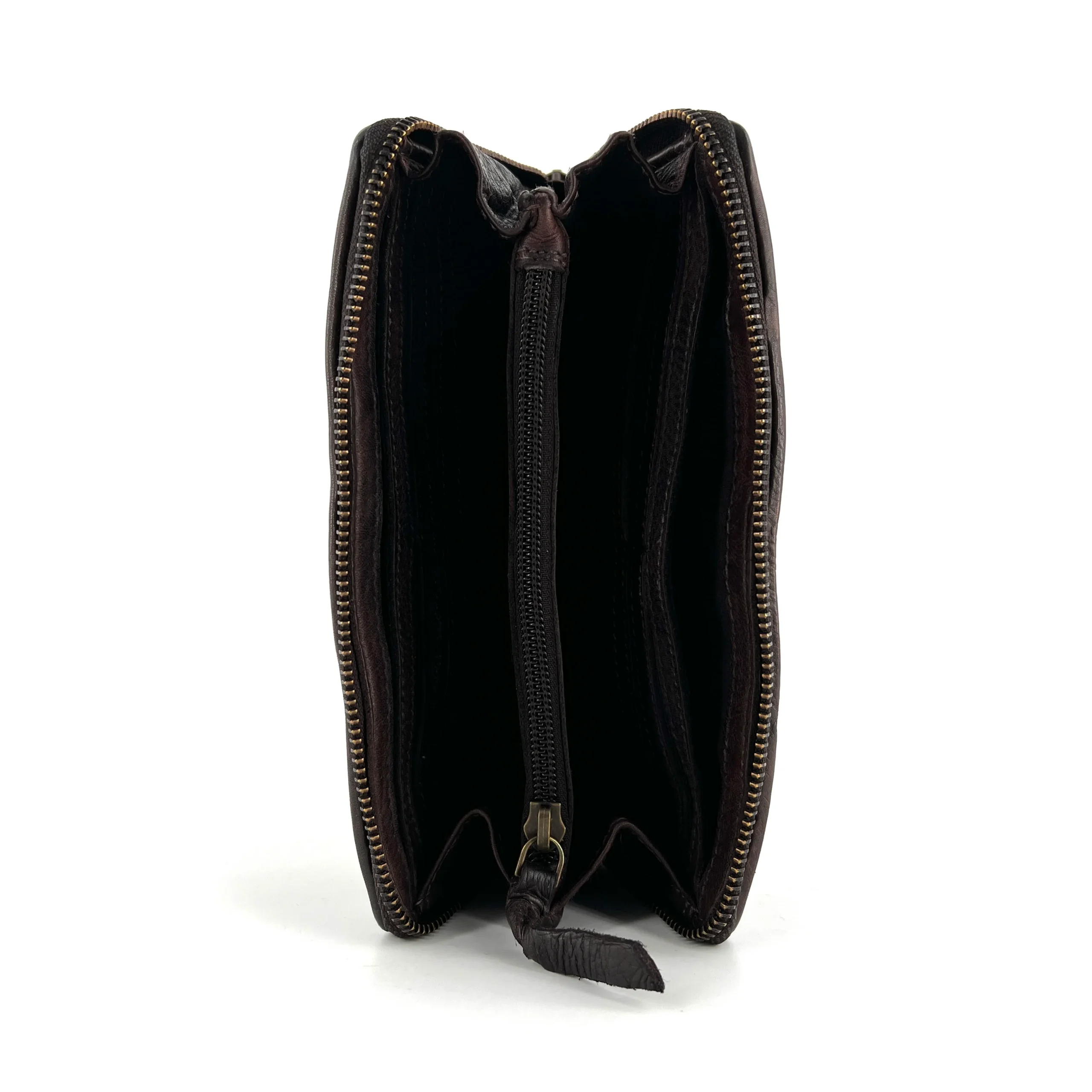 Ce portefeuille, large ouverture zippée, propose un compartiment monnaie zippé intérieur, de nombreux emplacements cartes, billets et pièces d’identité.