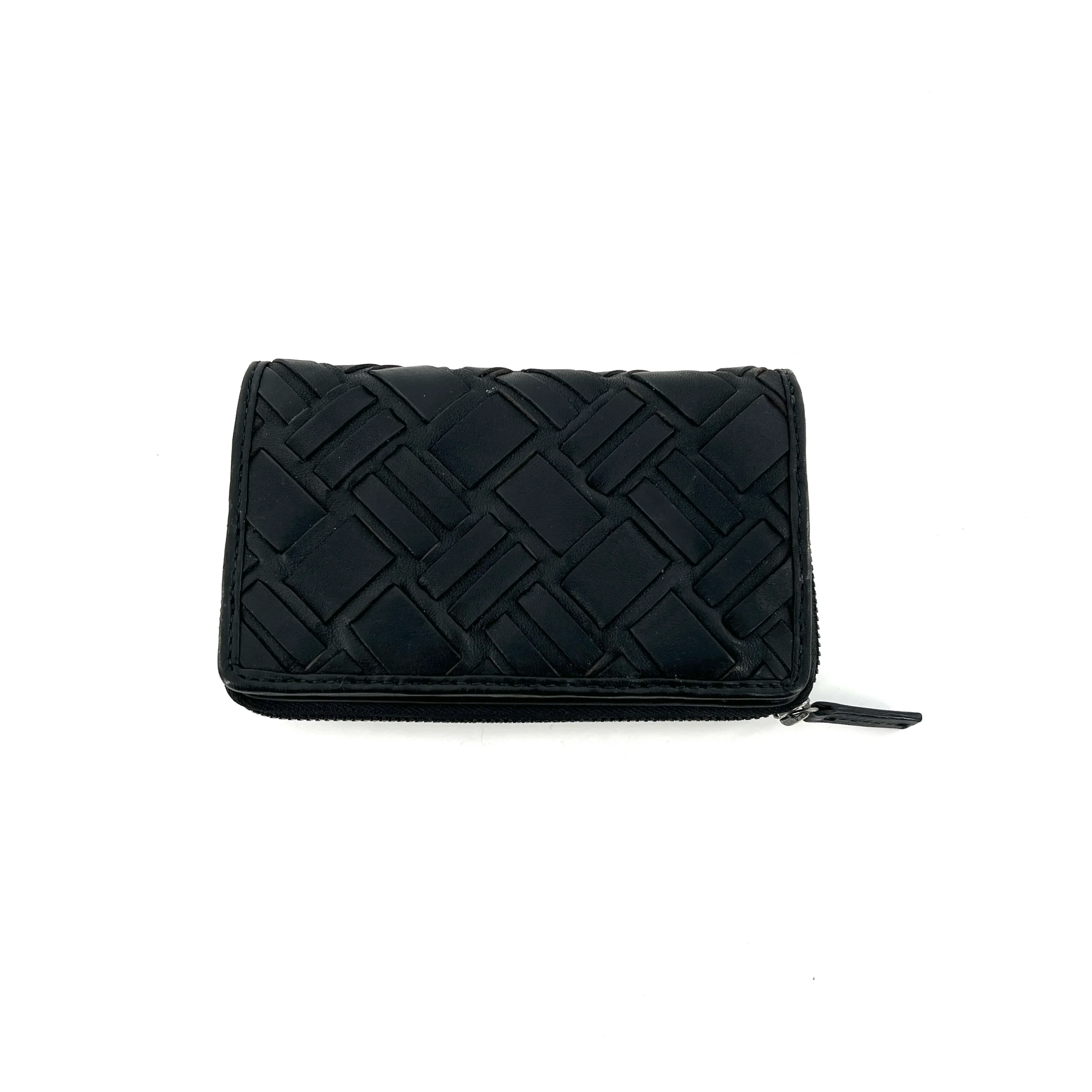 Portefeuille PM en Cuir Tressé Noir