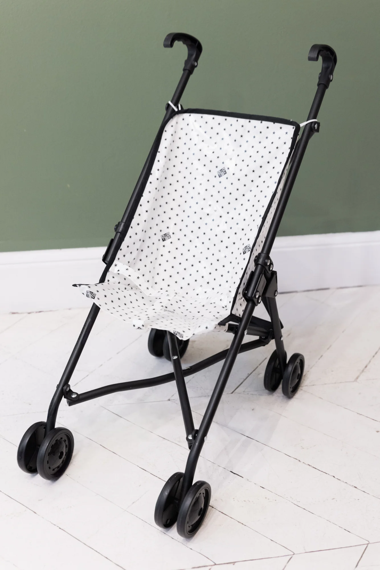 Découvrez la poussette de poupée BONTON en collaboration avec MINIKANE, l’accessoire incontournable pour les enfants qui souhaitent promener leurs poupées avec élégance ! Avec son imprimé enduit étoile noir, l’imprimé embalématique de la marque BONTON, cette poussette pliable allie style et praticité. Offrez à vos enfants un moment de jeu stylé avec cette poussette de qualité, parfaite pour les balades en intérieur comme en extérieur. Dépliée la pousette mesure 63 cm de longeur, 11 cm de largeur et 11 cm de hauteur.