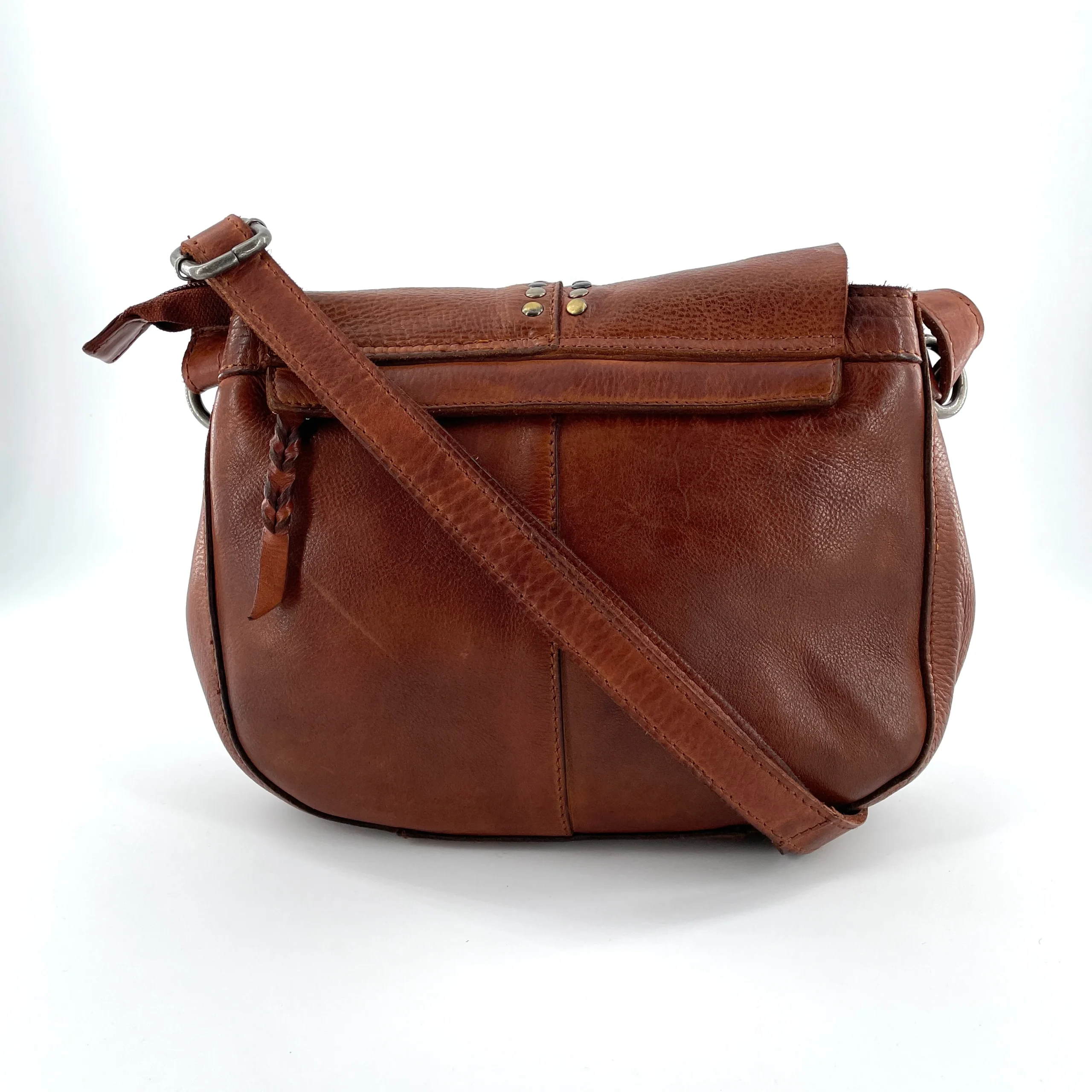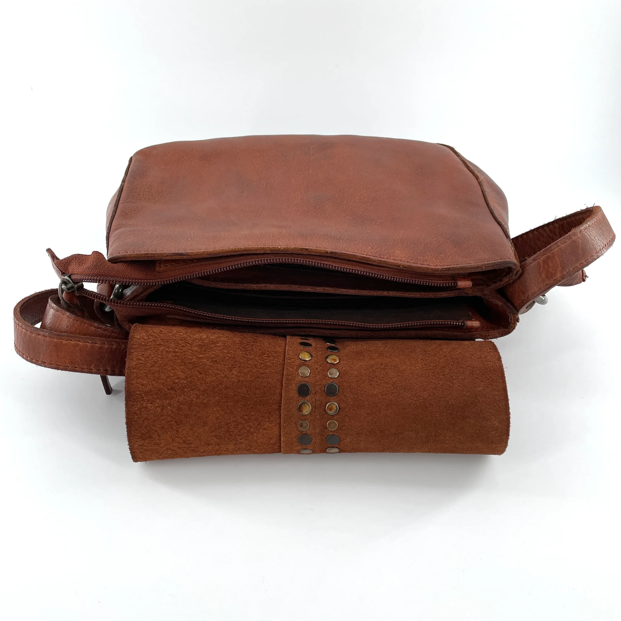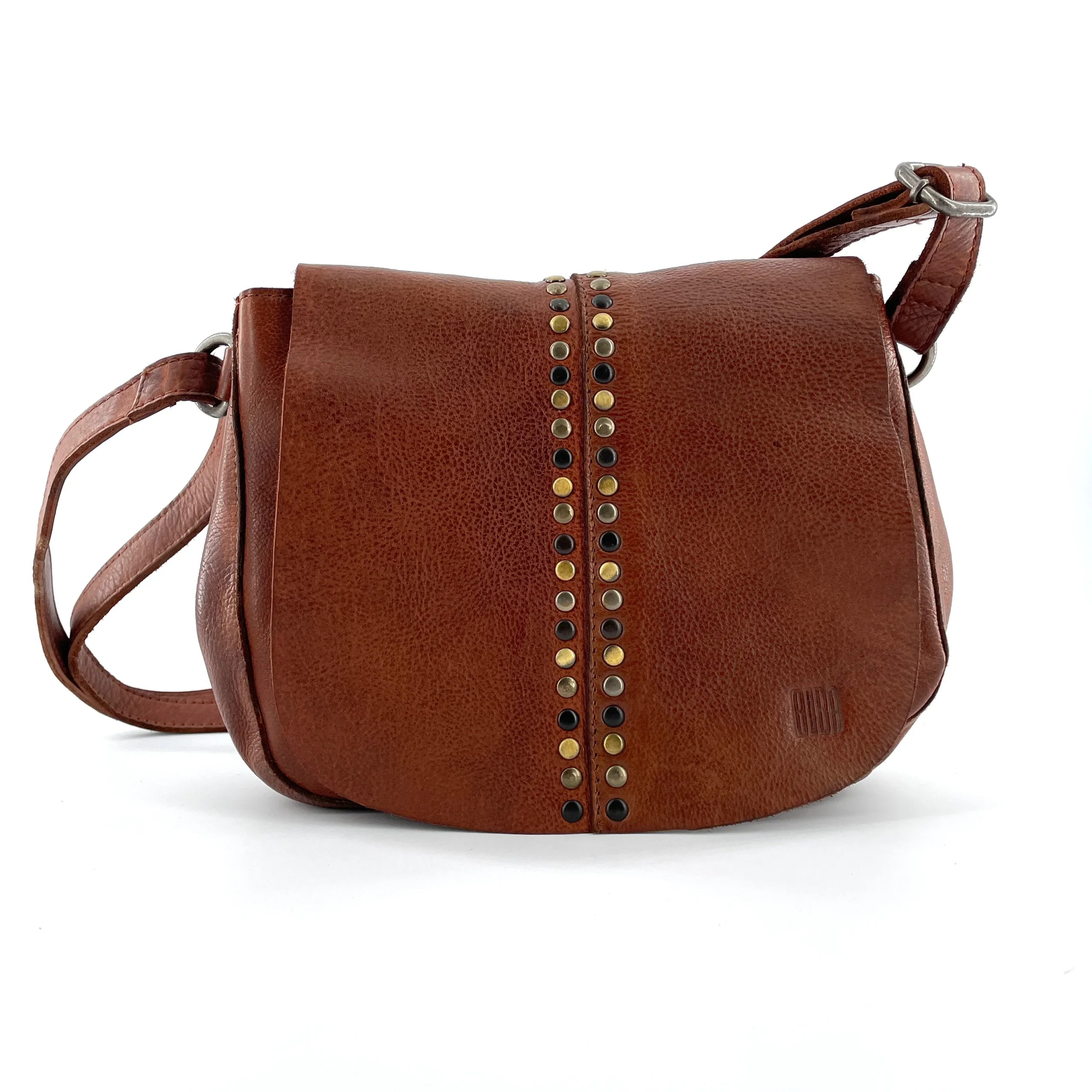 Sac Bandoulière Rabat Clouté en Cuir Camel PM