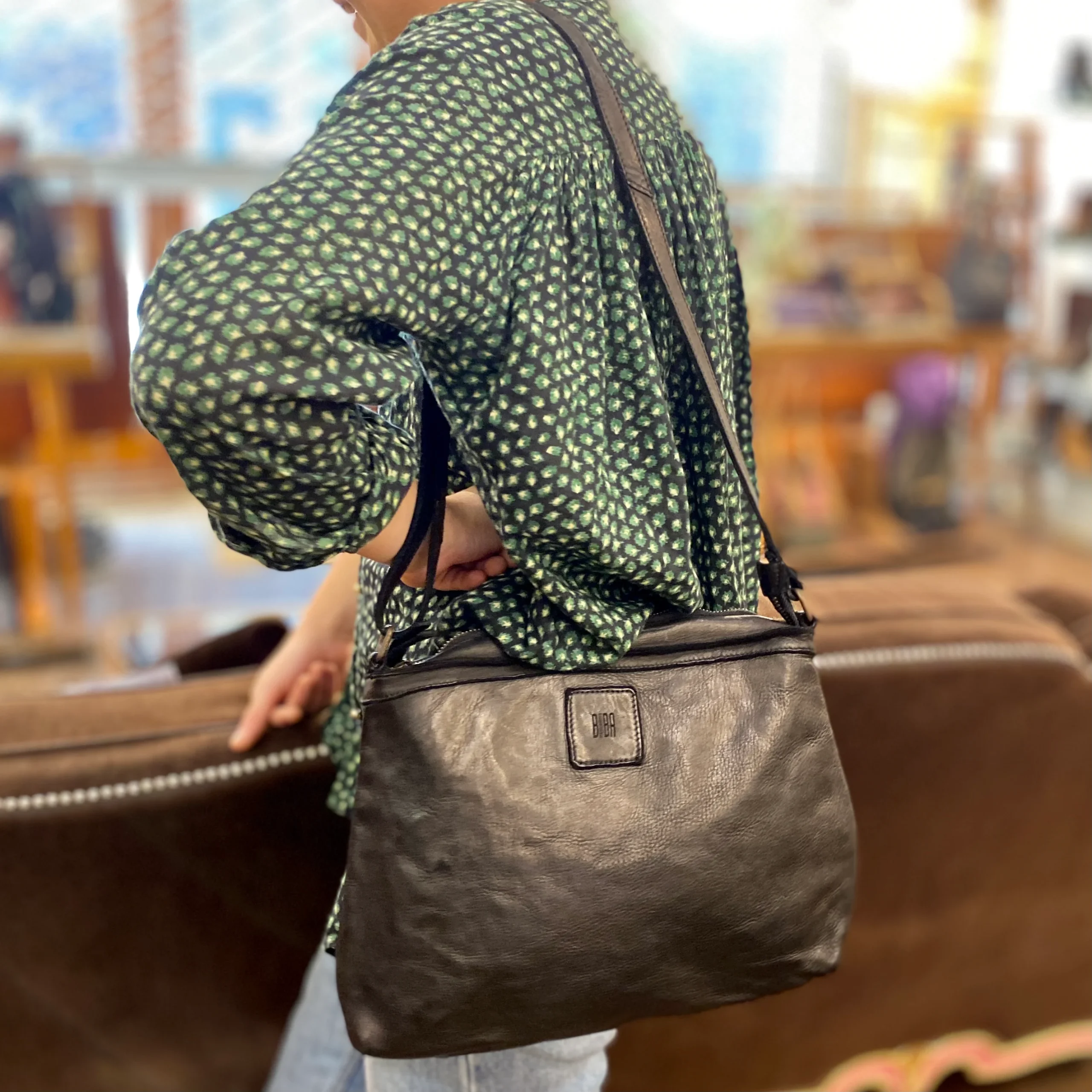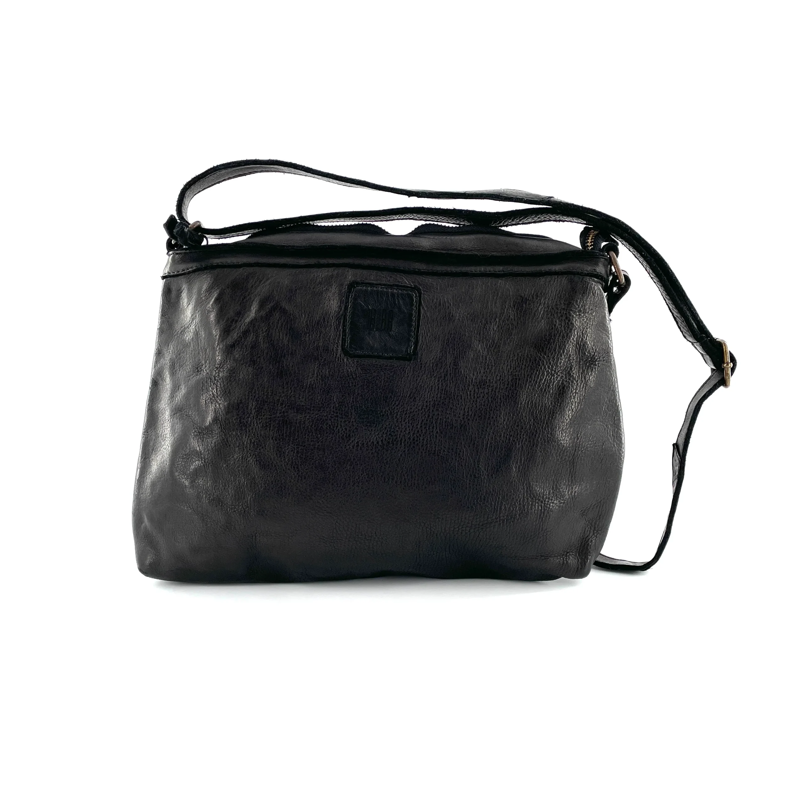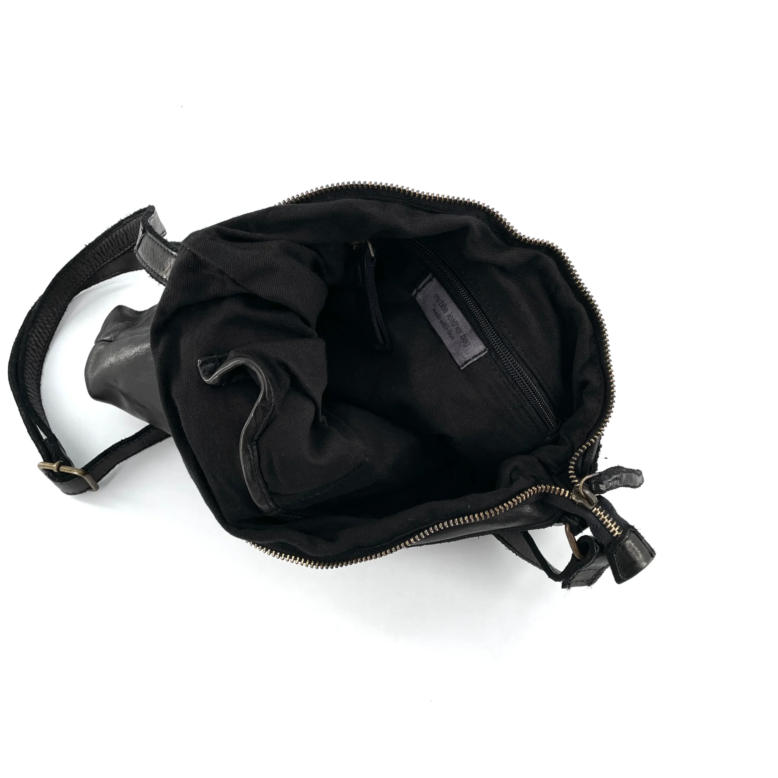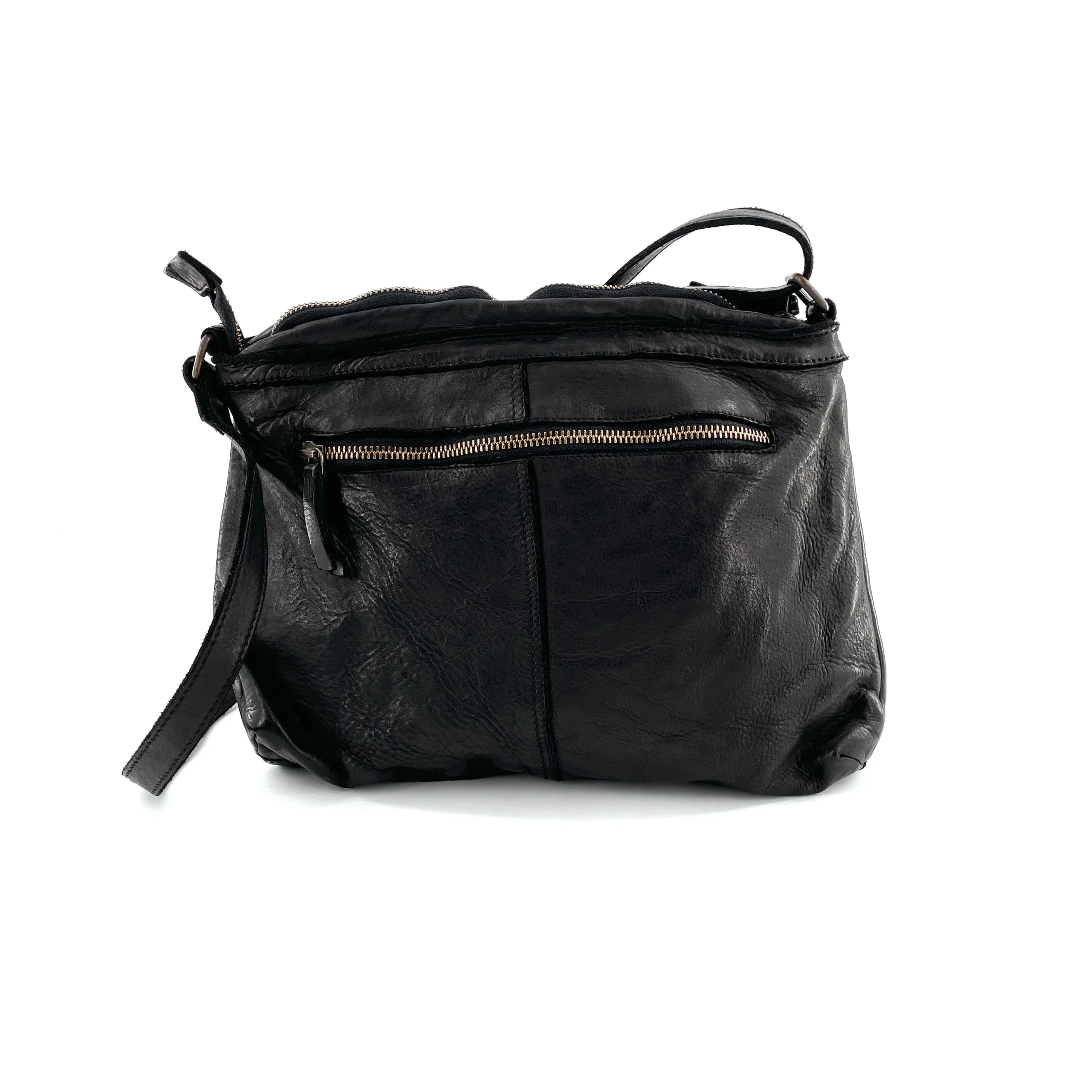 Sac Bandoulière Zippé en Cuir Noir Lisse