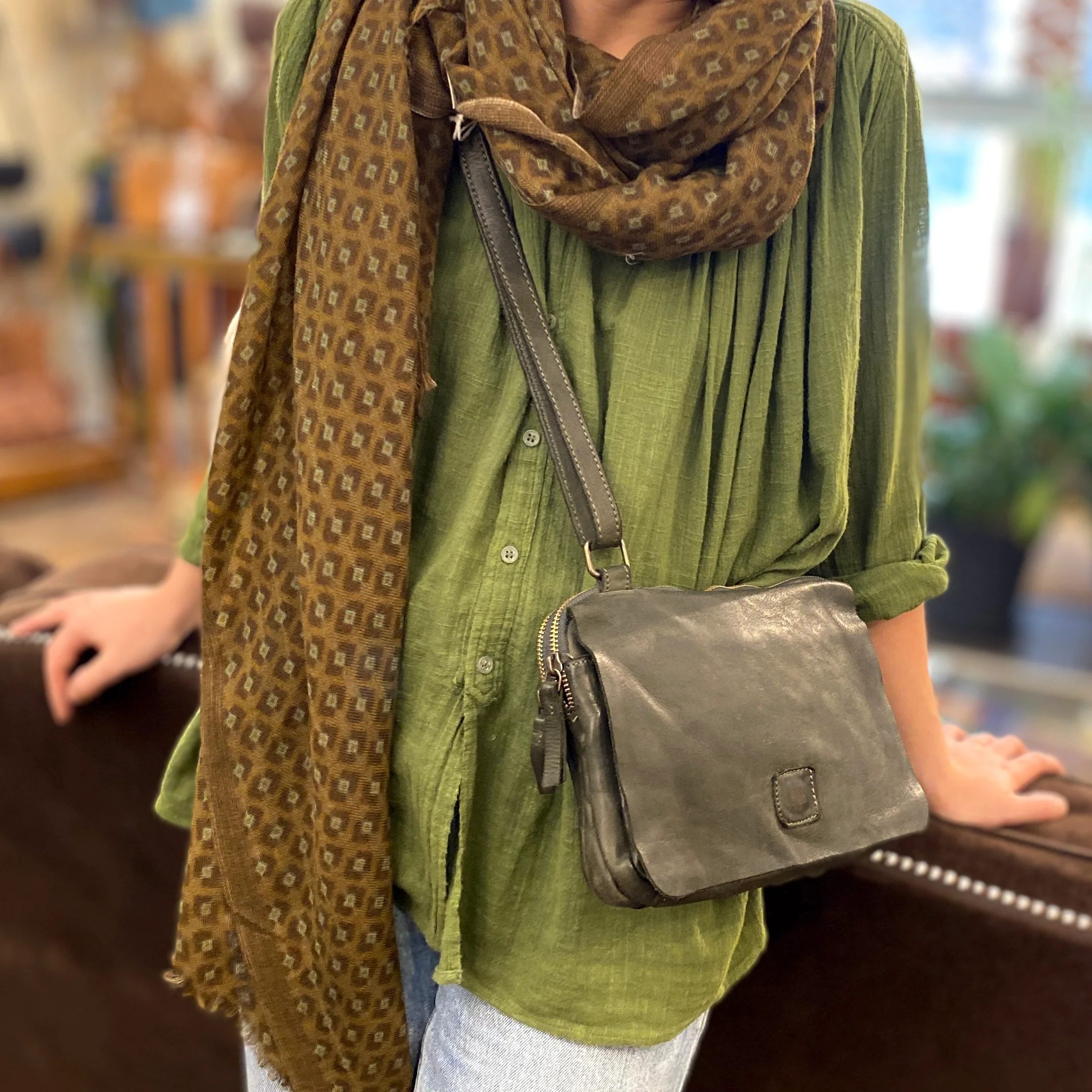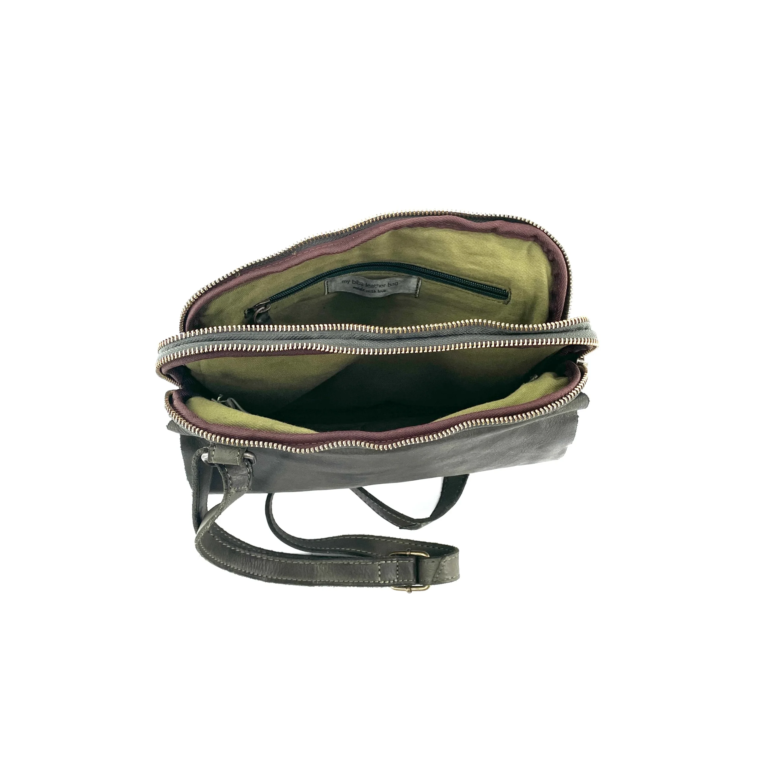 Sac Double Zip Rabat Aimanté en Cuir Vert