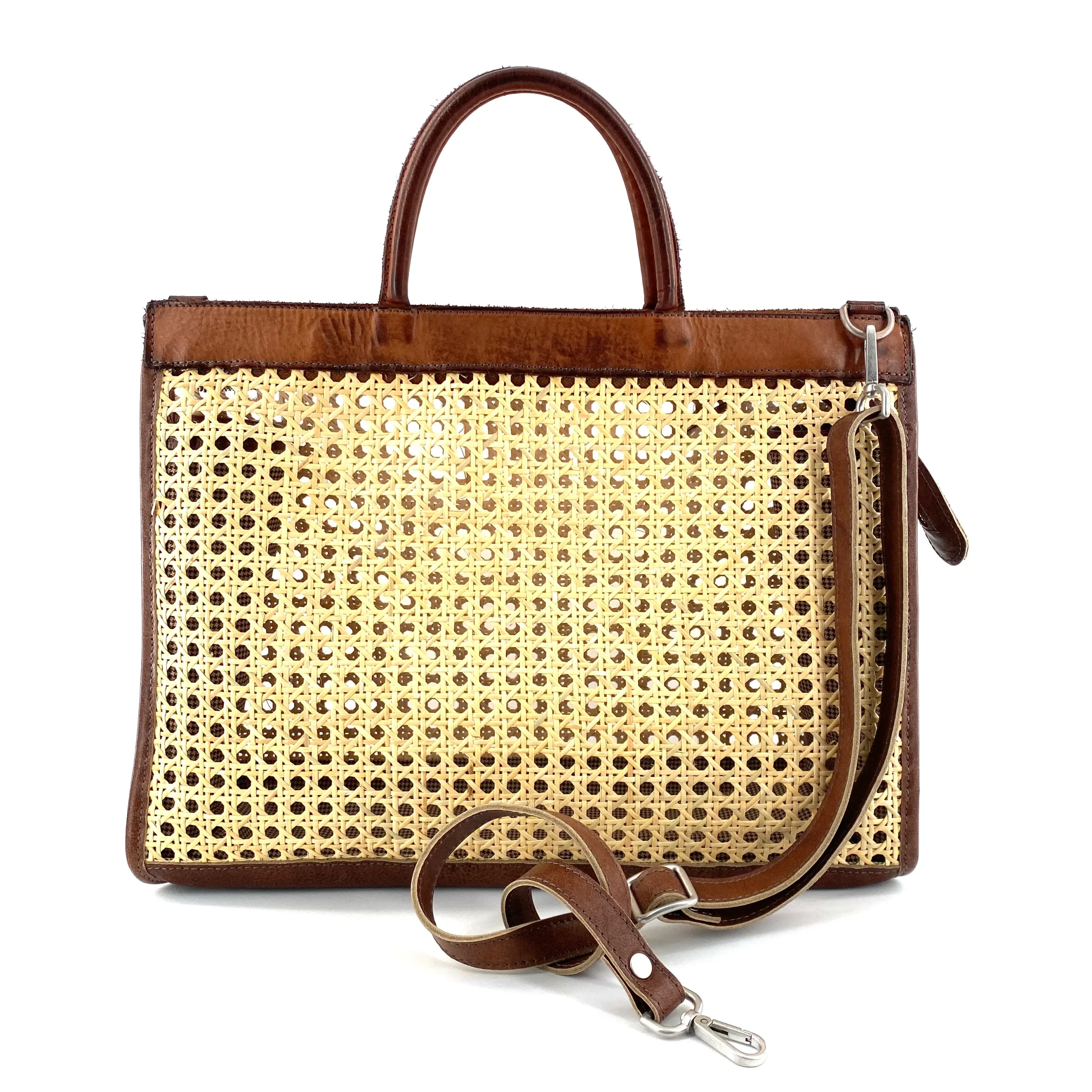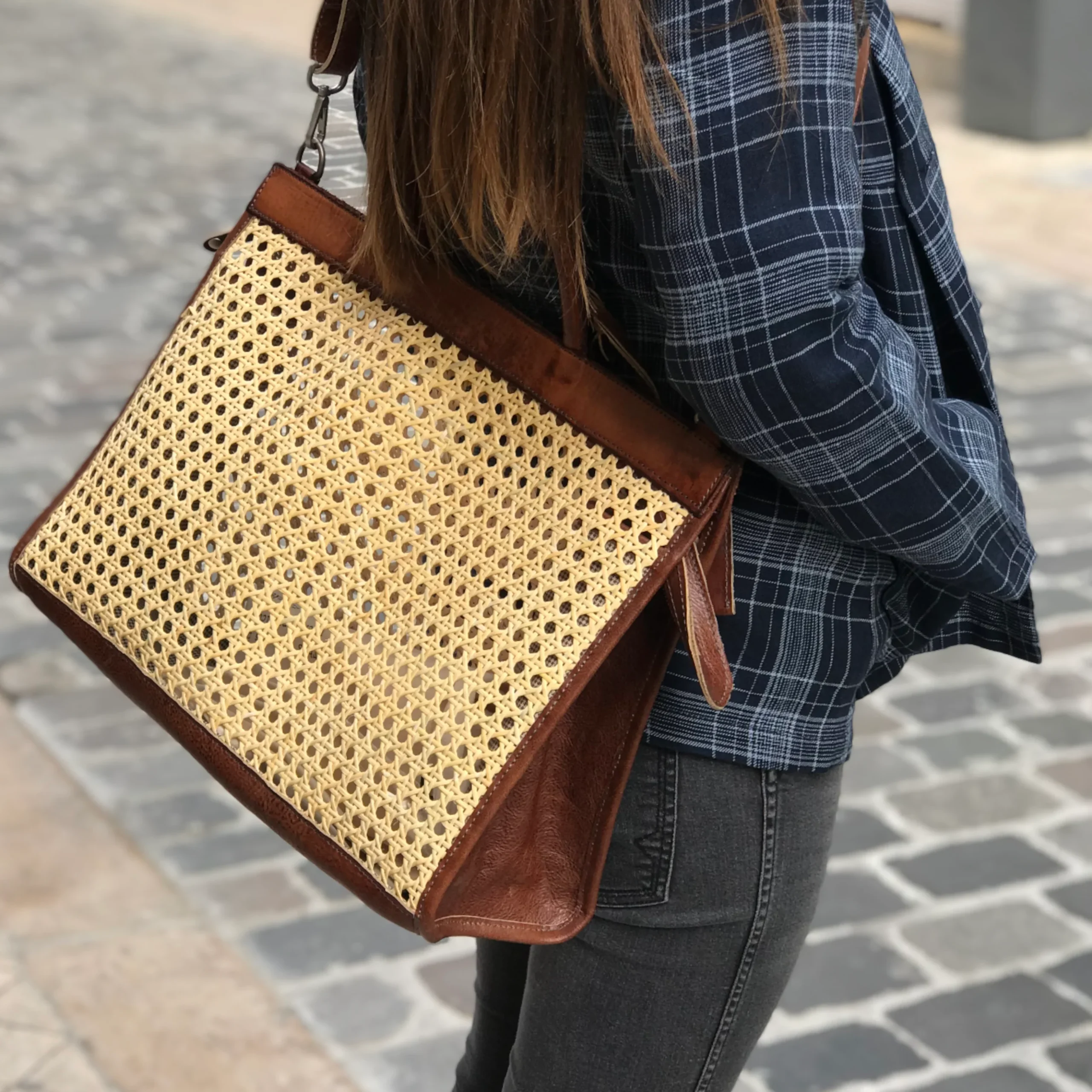Ce sac qui associe cannage et cuir lavé est spectaculaire, un objet, un Accessoire!