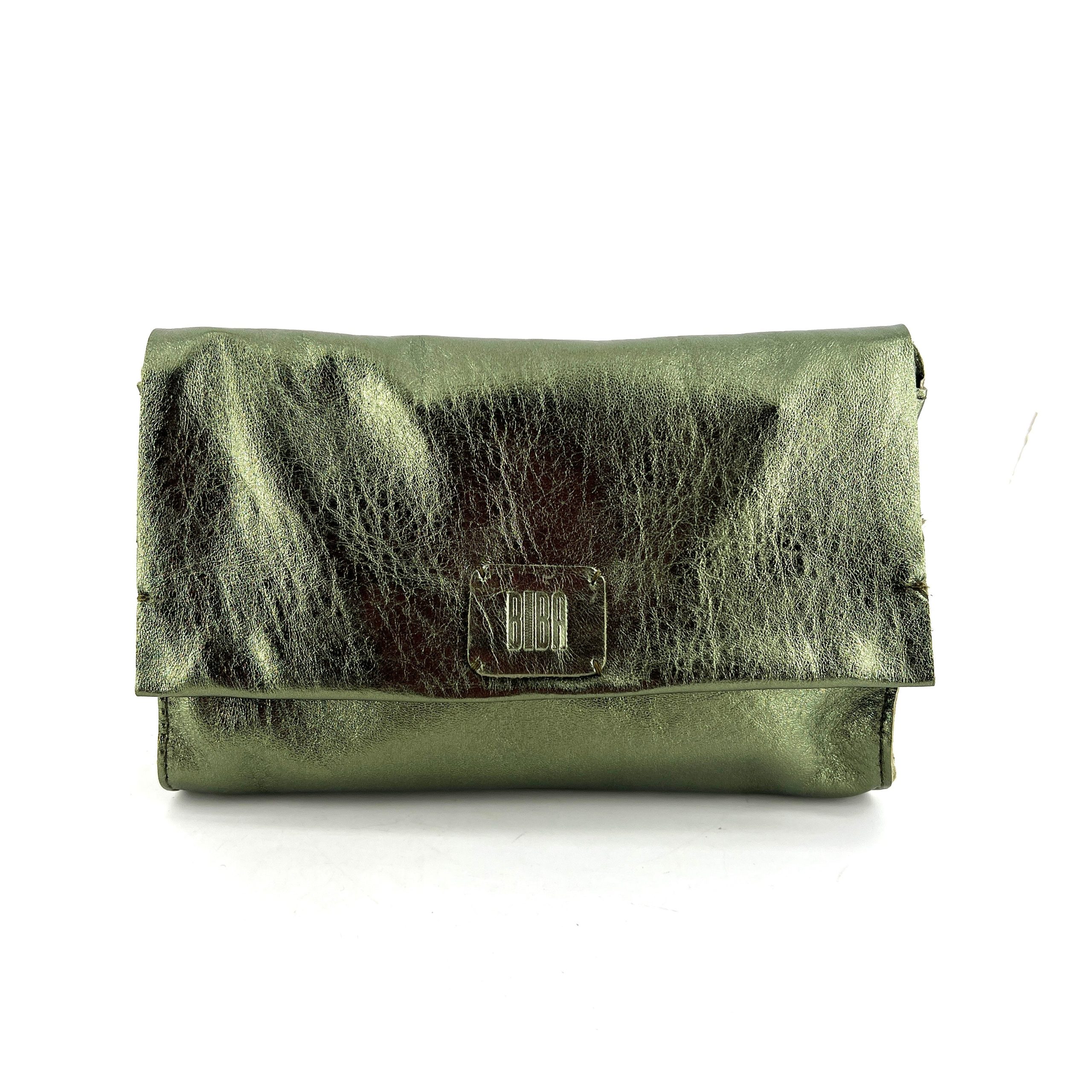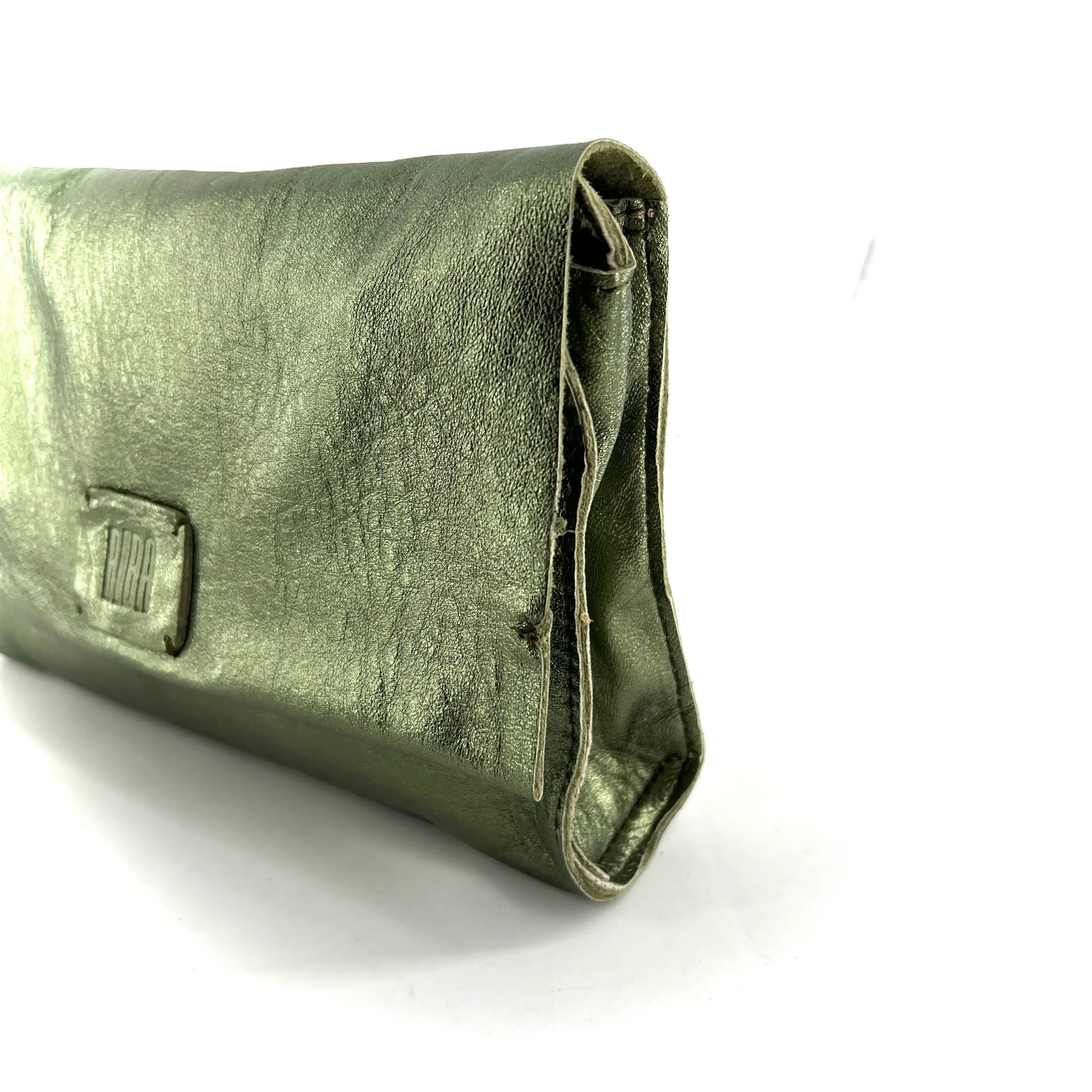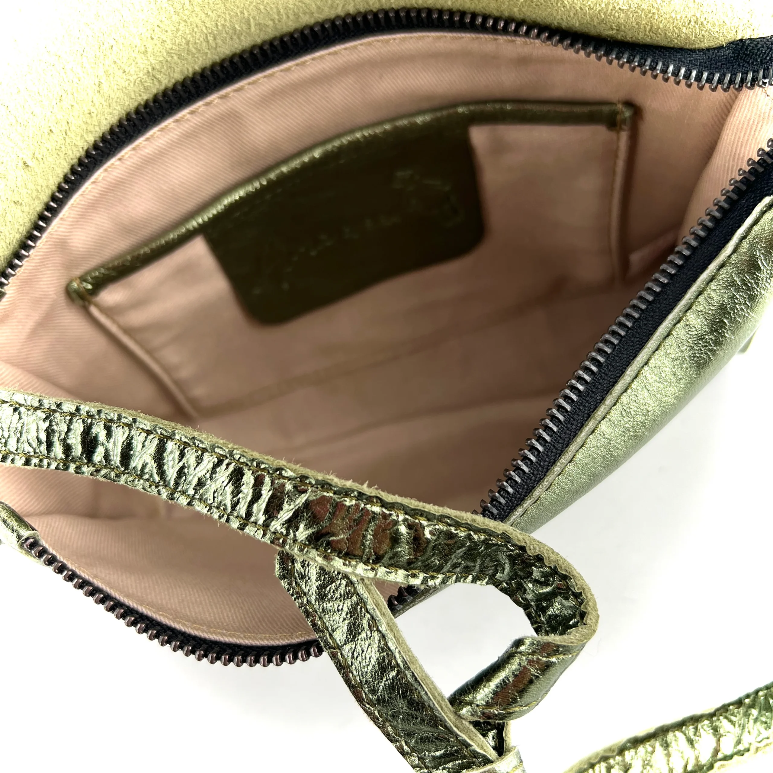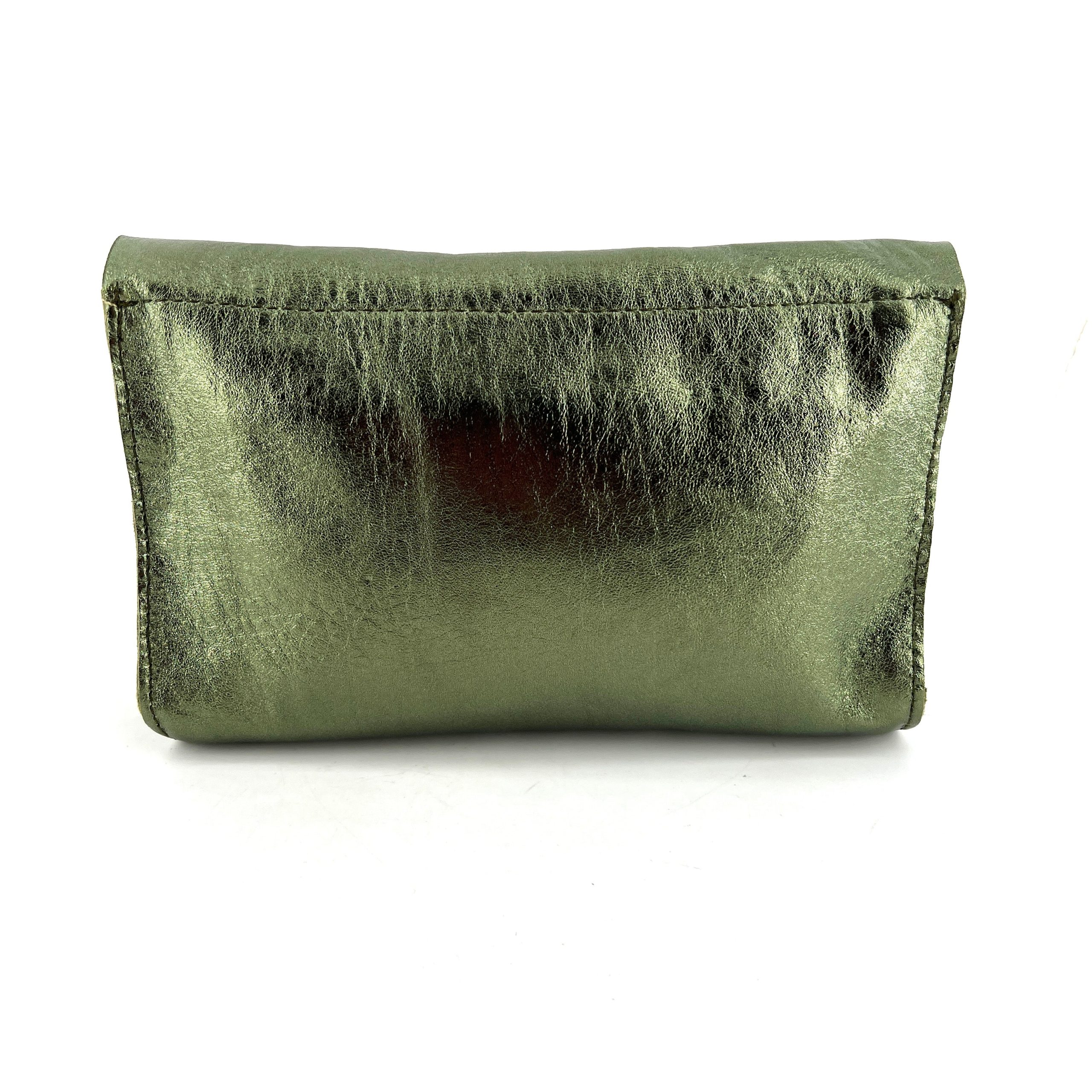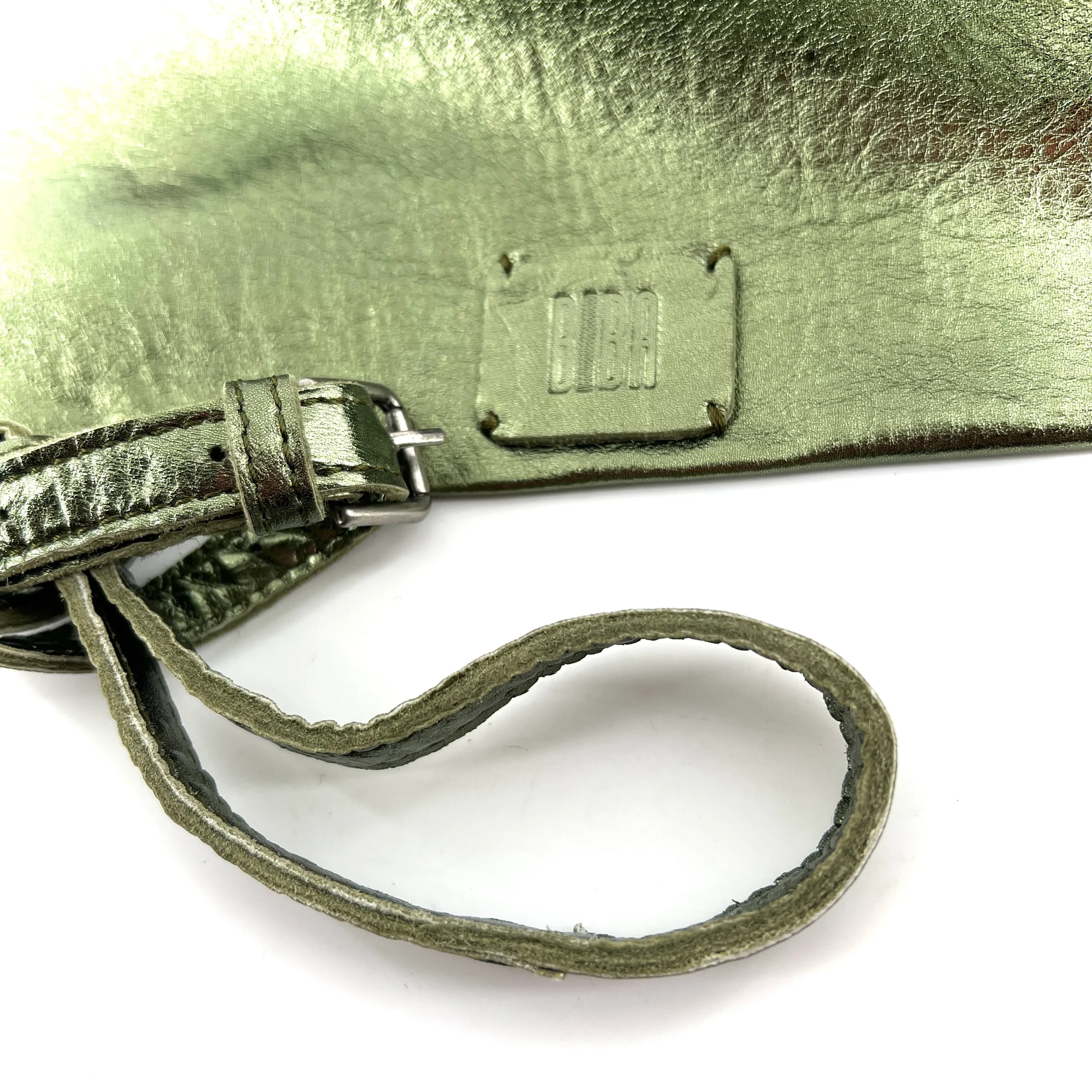 Mini-Sac Tressé en Cuir Vert Porté Travers