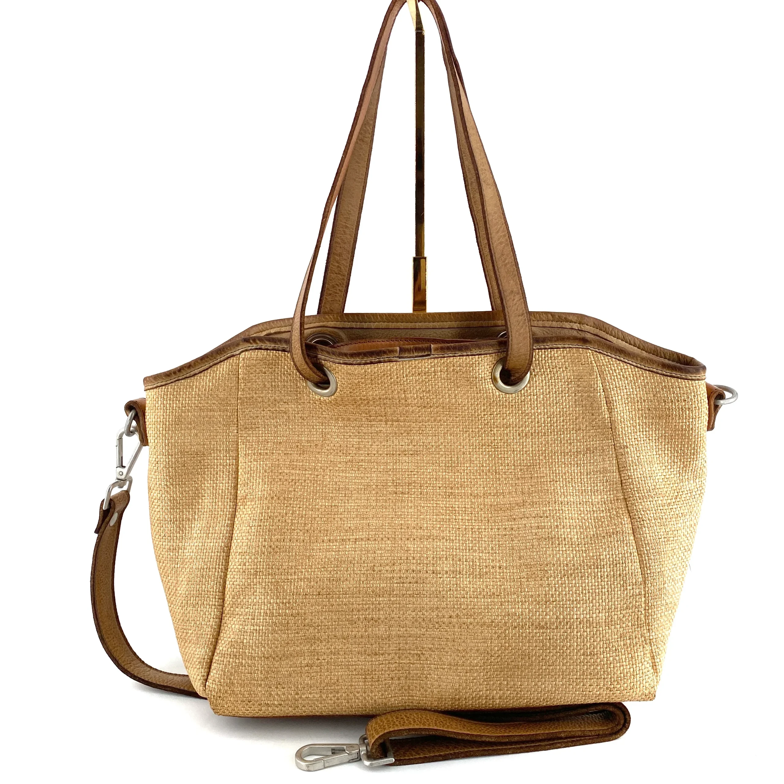 Existe aussi en paille plus claire et cuir camel et gris.