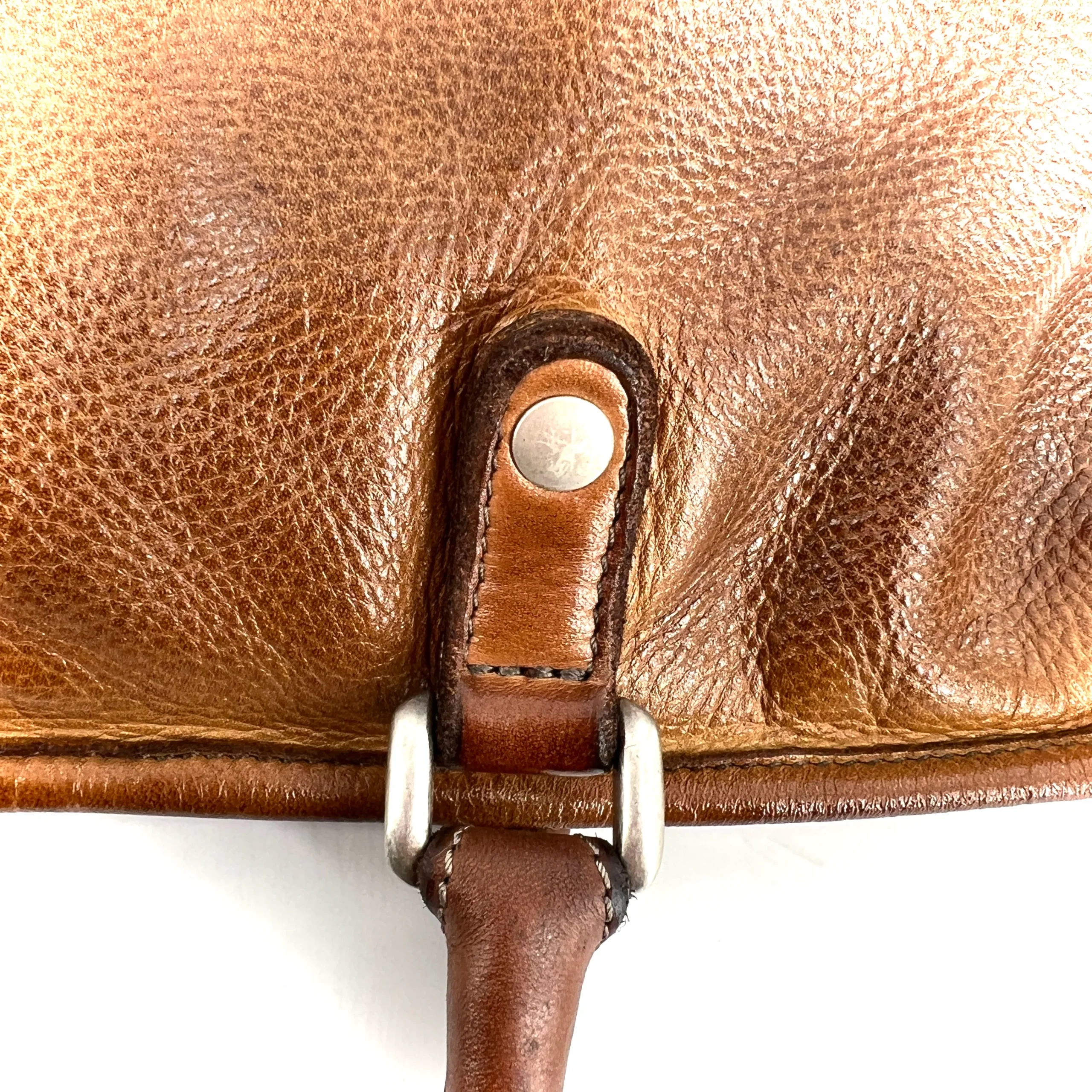 Ce sac en cuir, tanné, teinté, vieillit à la main est d’une simplicité élégante.