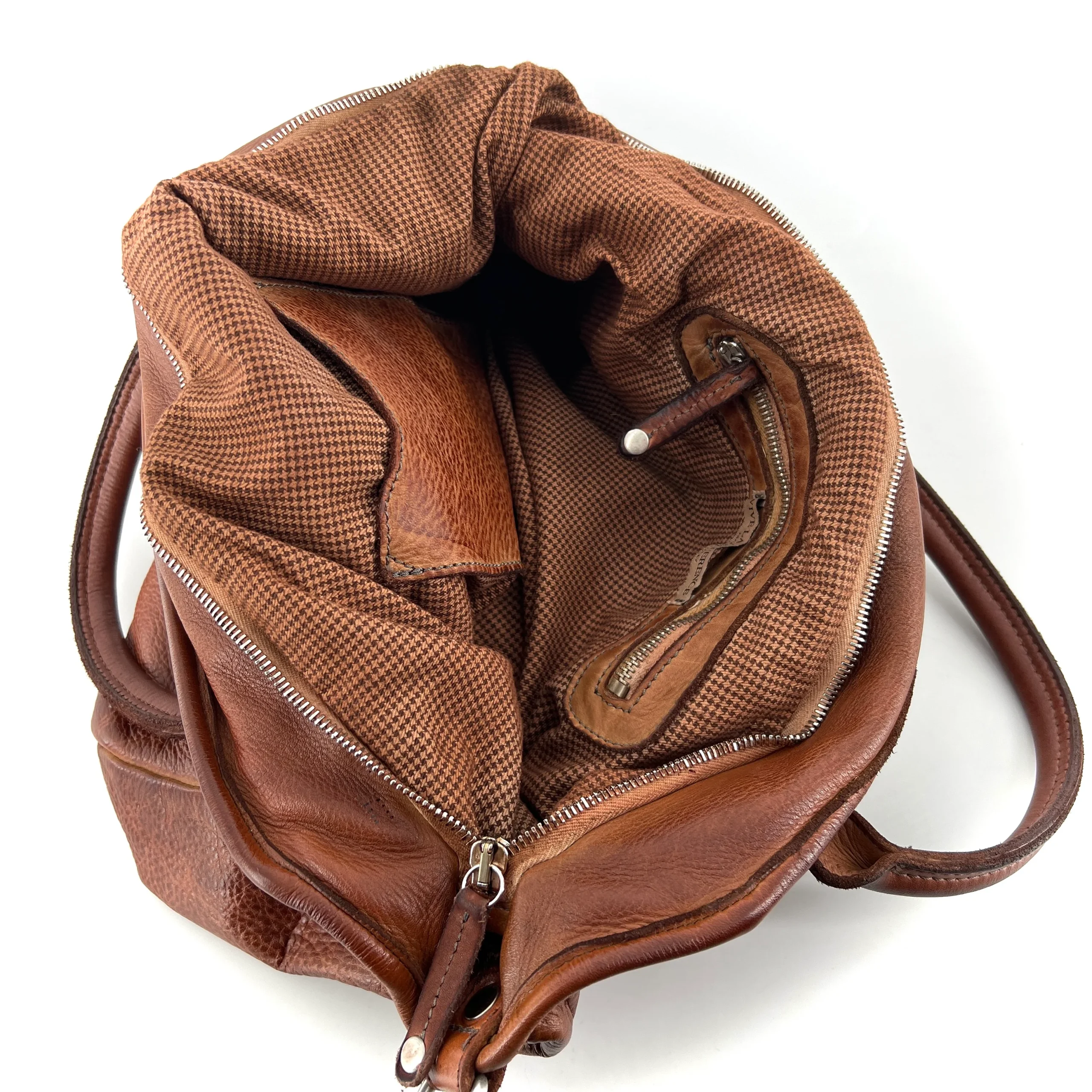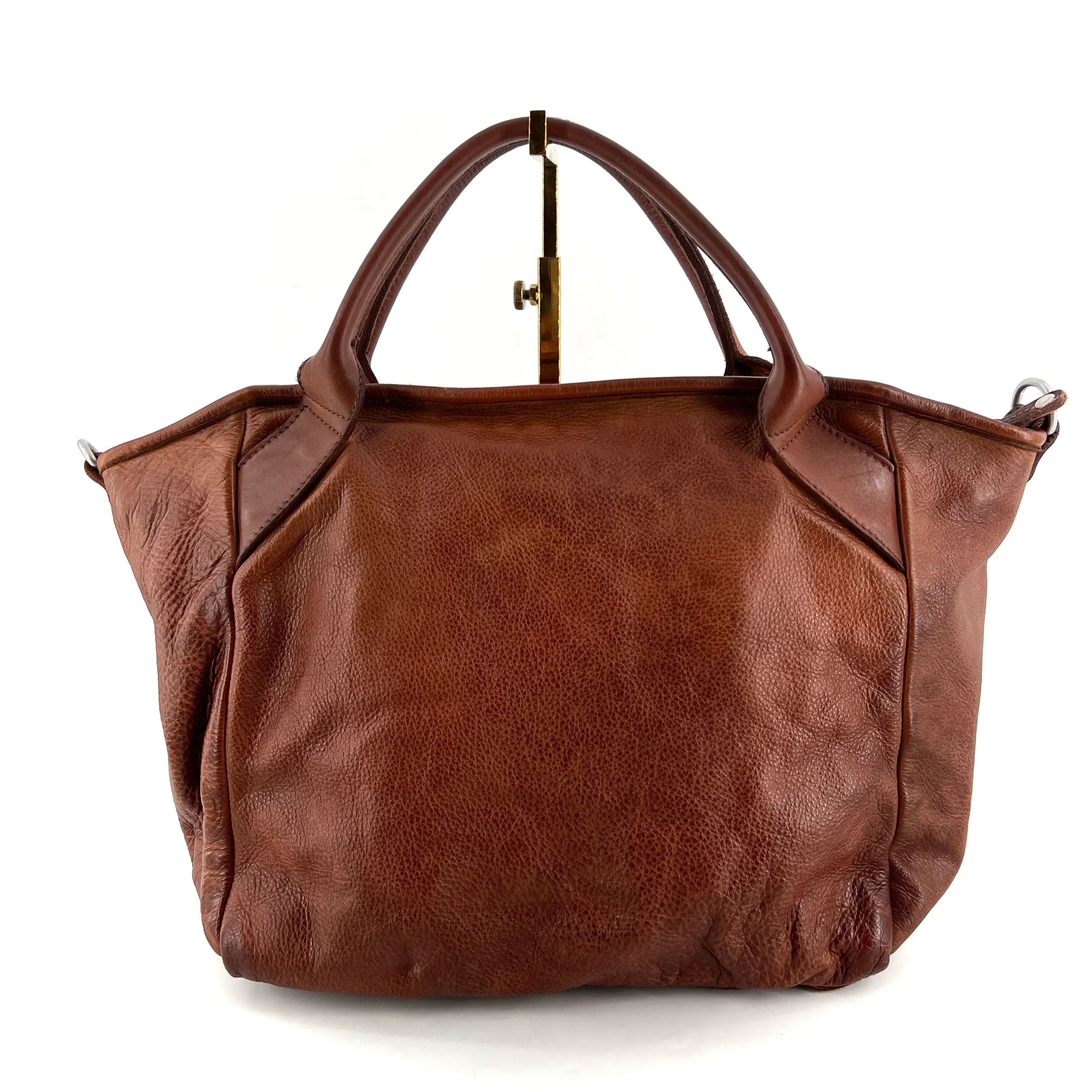 Ce sac en cuir, tanné, teinté, vieillit à la main est d’une simplicité élégante.