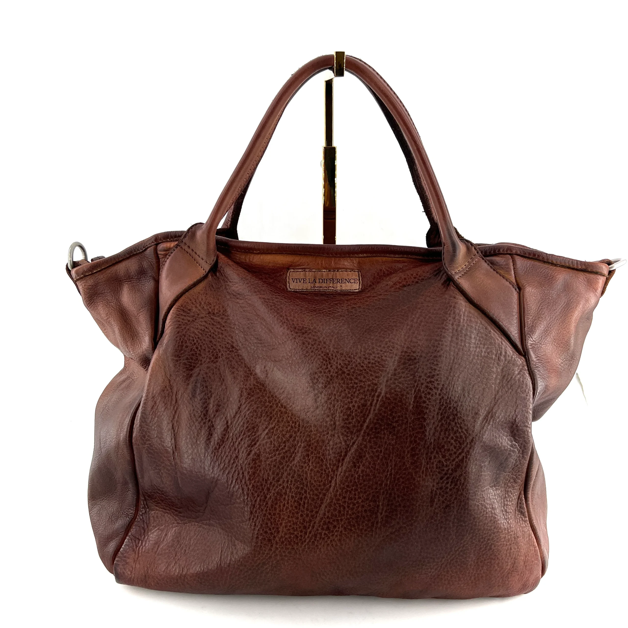 Ce sac en cuir, tanné, teinté, vieilliment artisanal à la main est d’une simplicité élégante.
