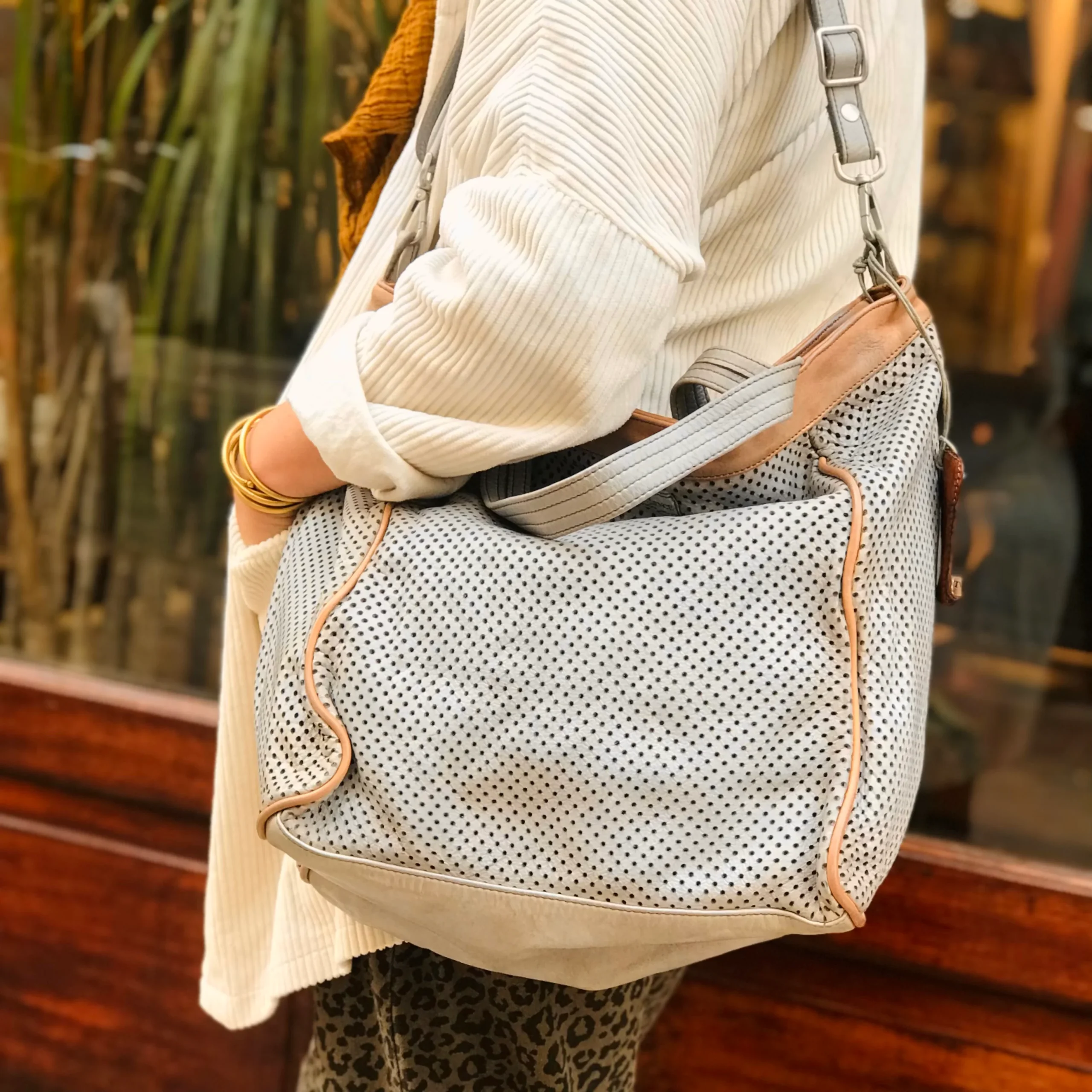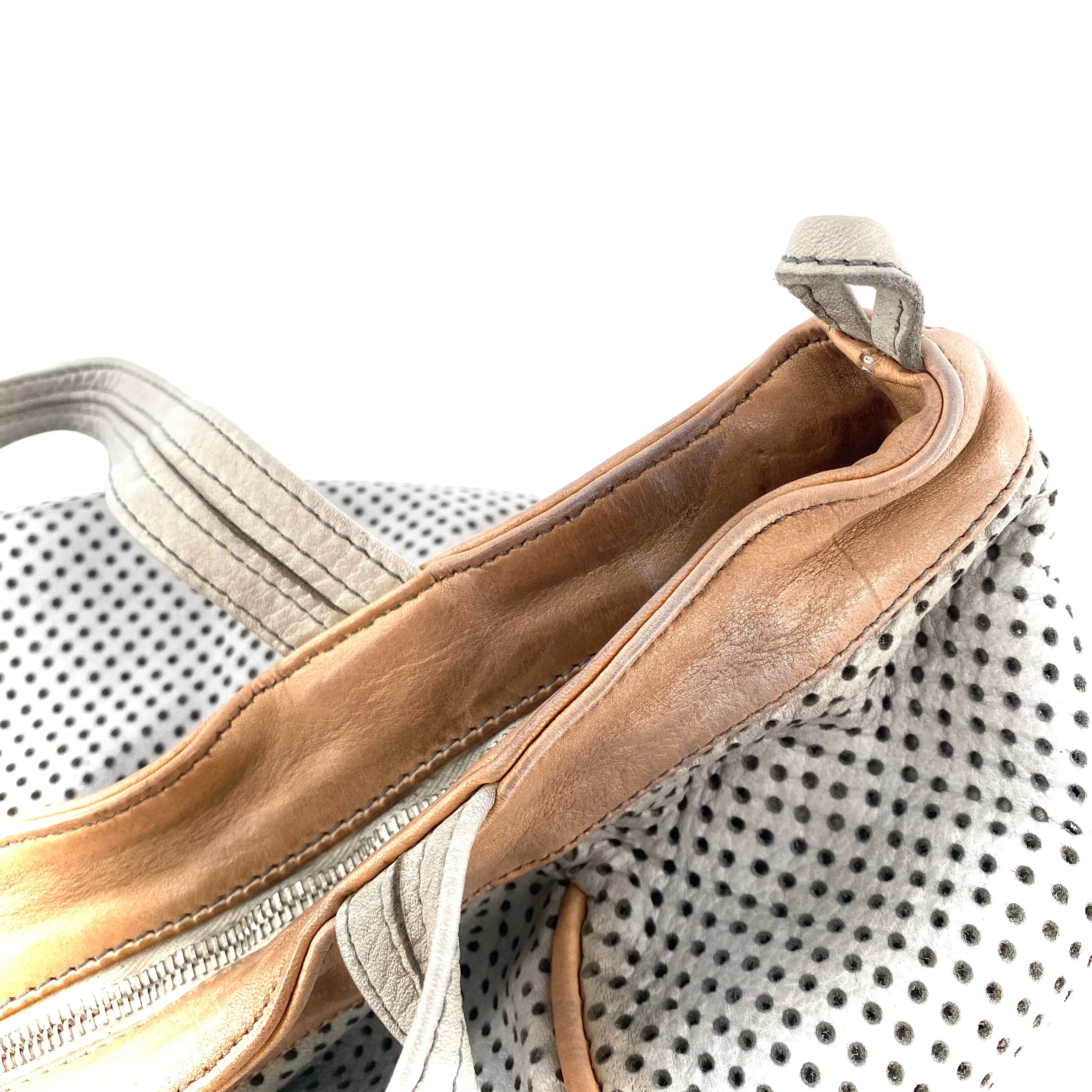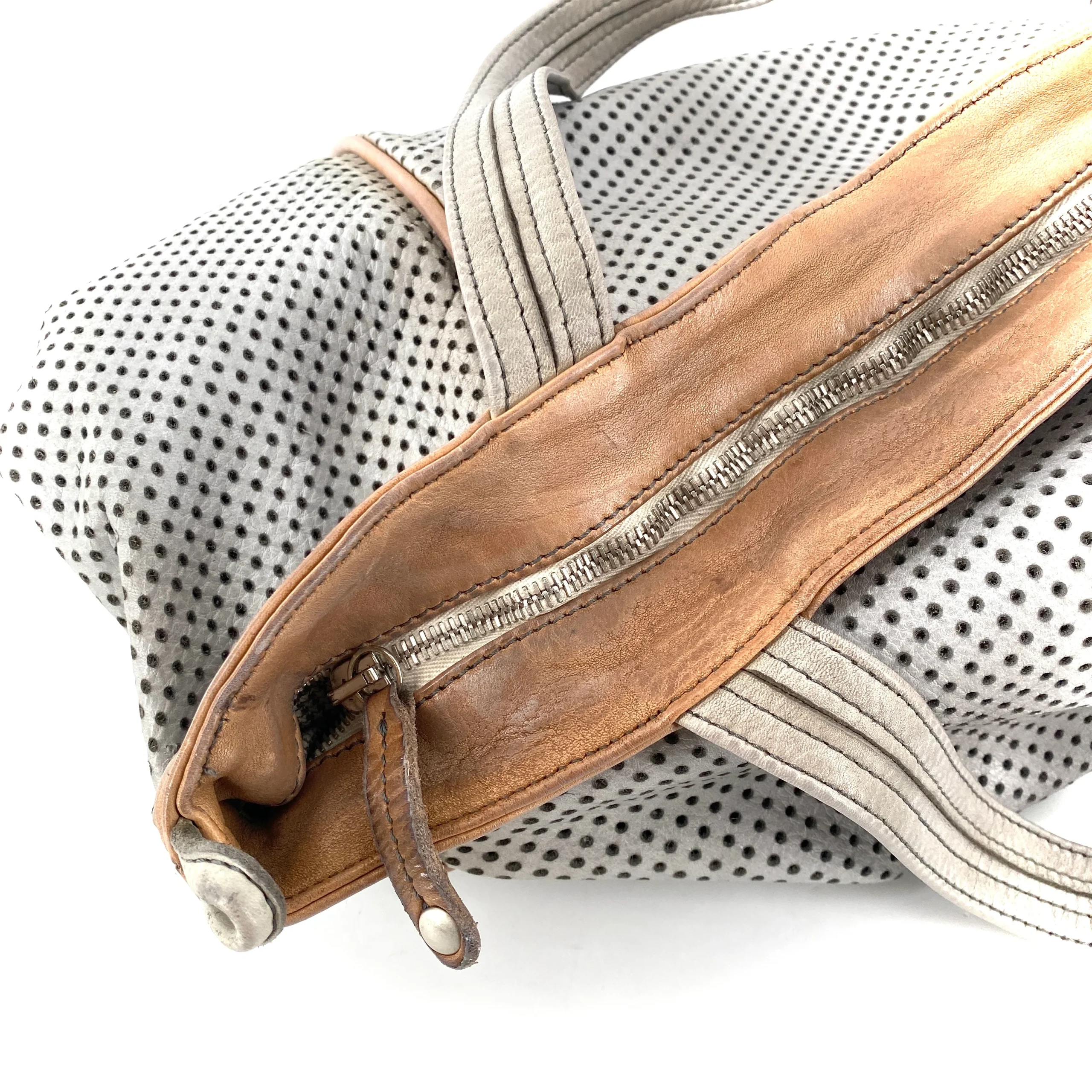 Sac IN CITTA en Cuir Perforé Blanc Gris