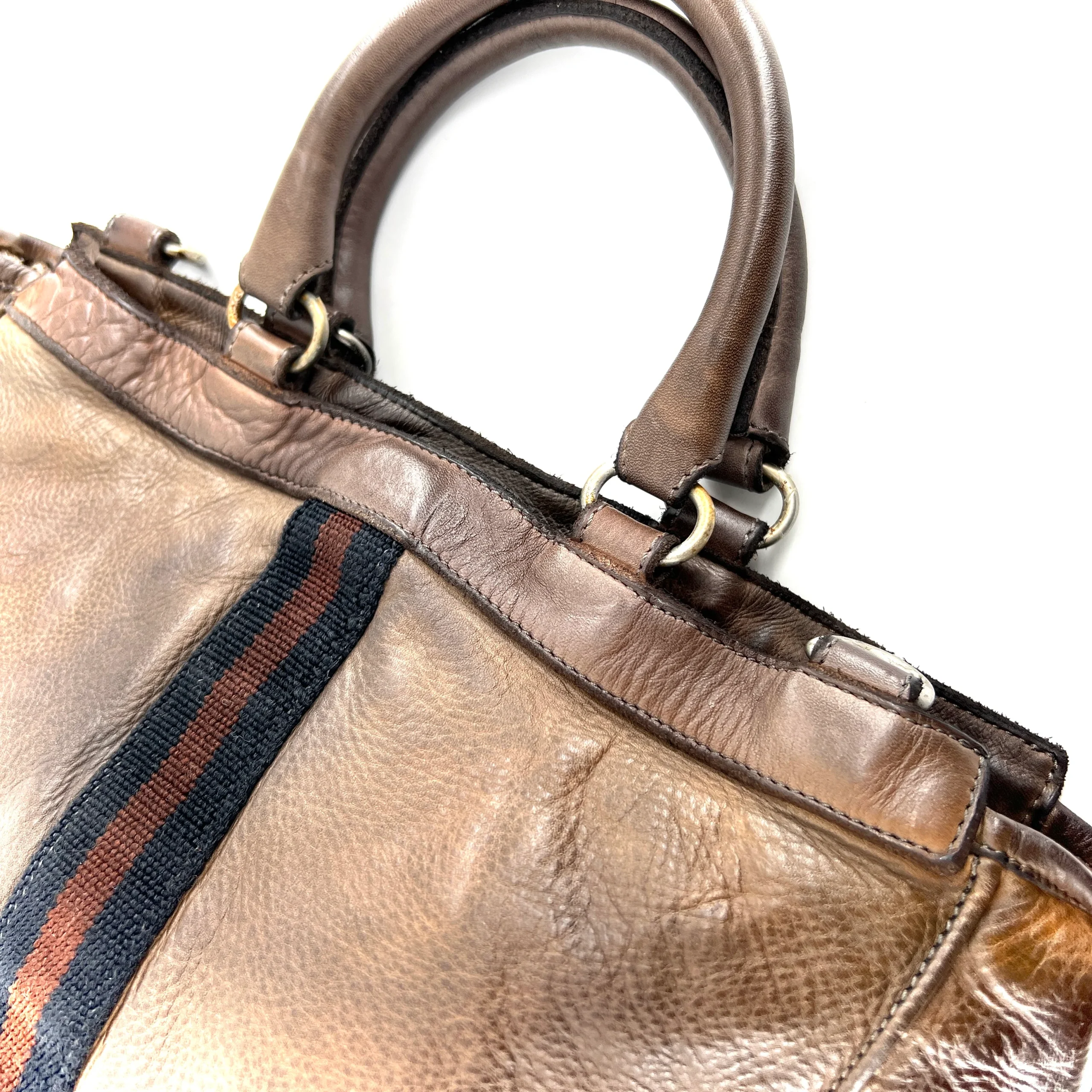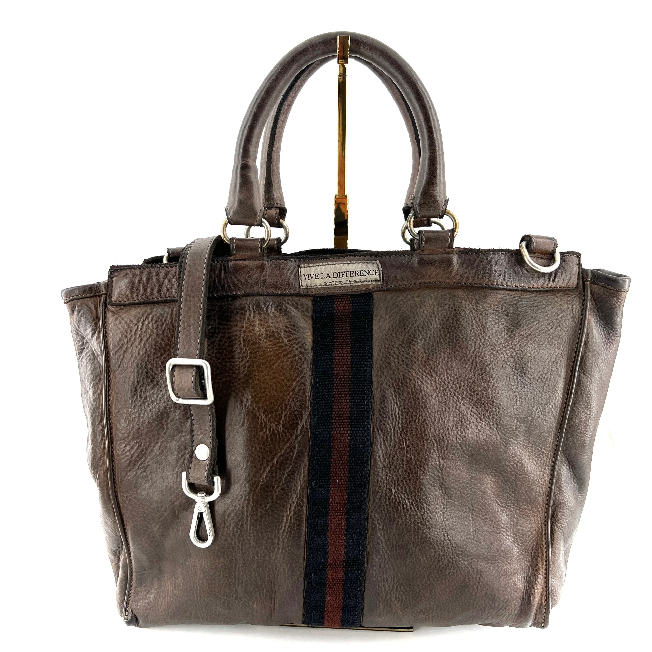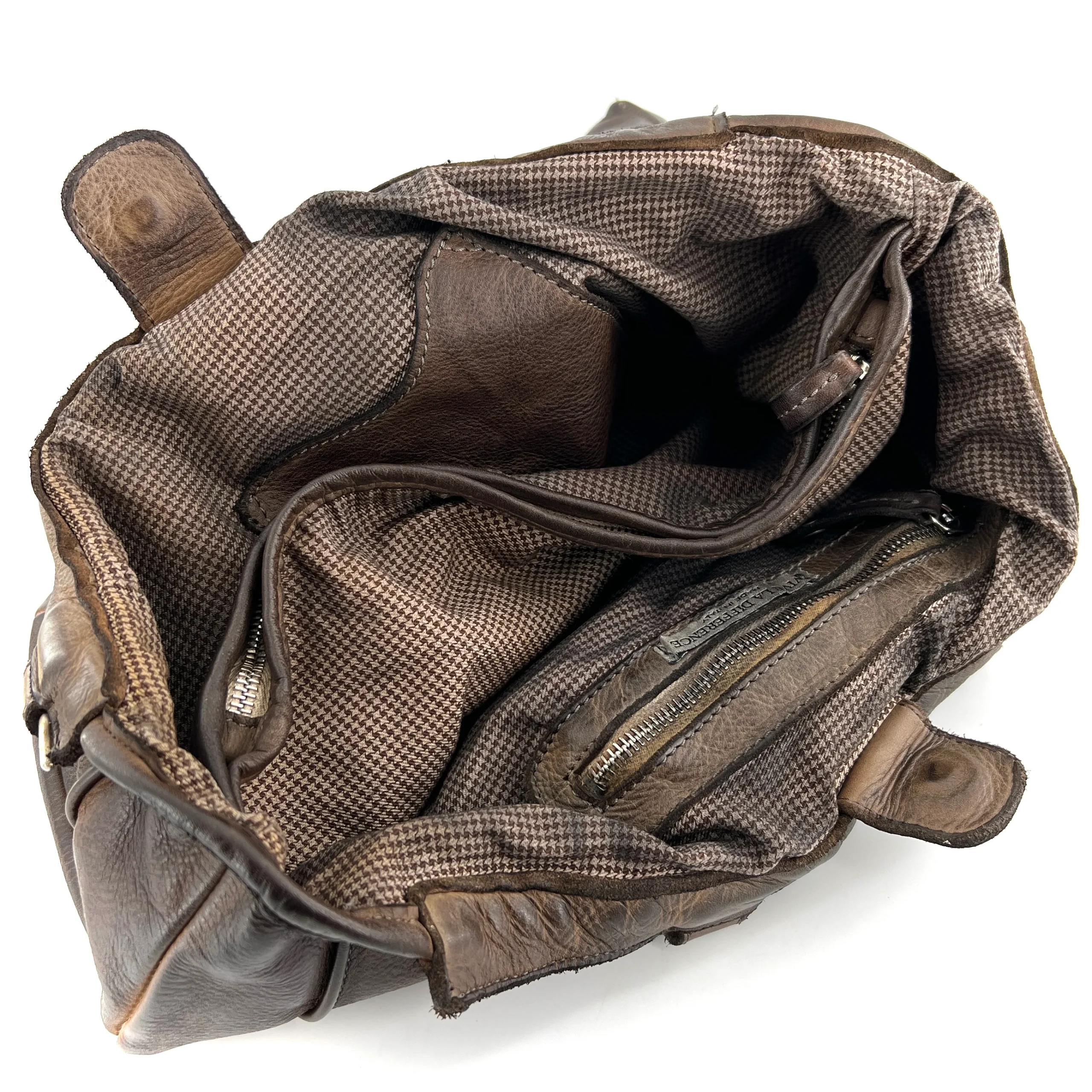 Ce sac tanné, teinté, et vieilli artisanalement à la main, est aussi simple qu’élégant.