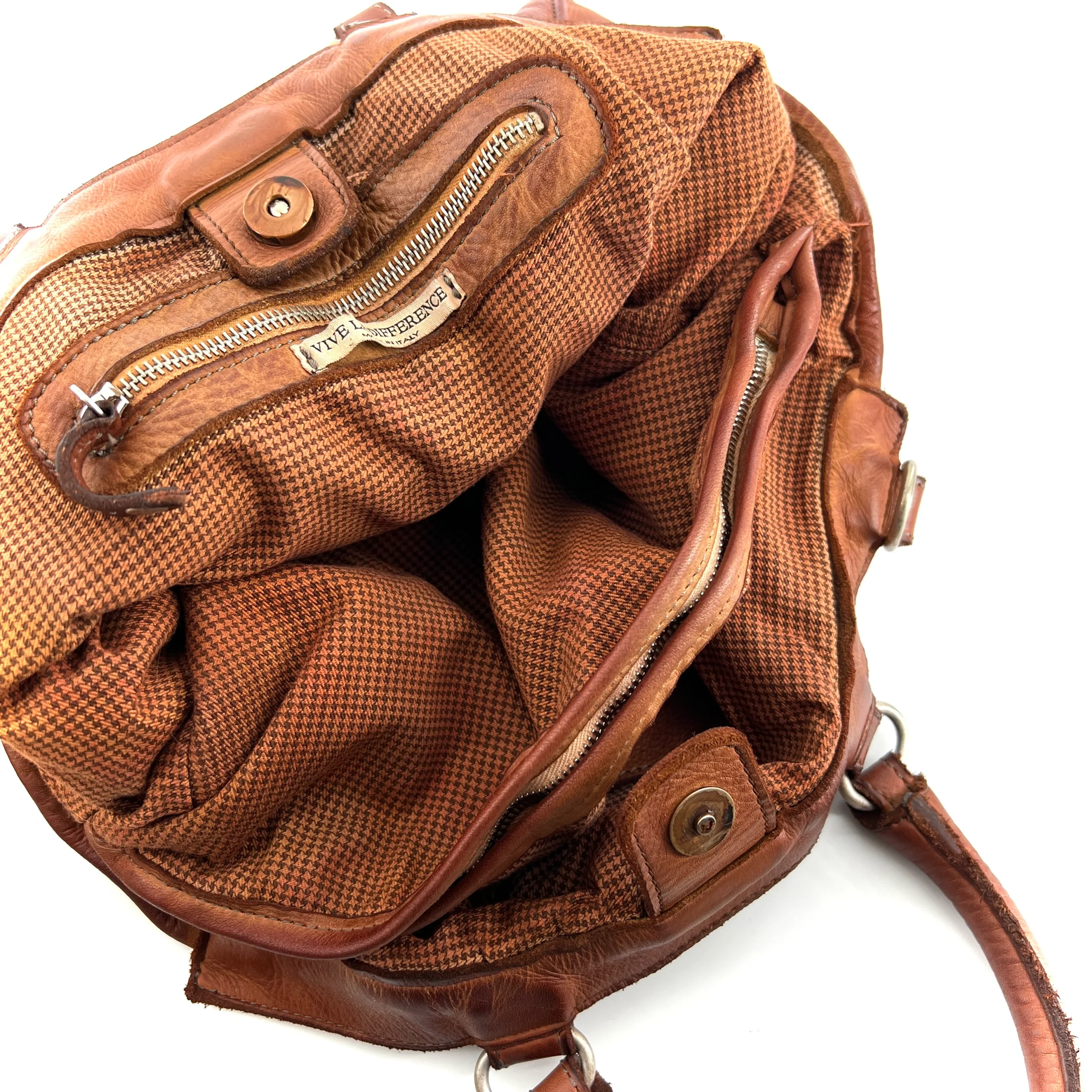 Ce sac tanné, teinté et vieilli artisanalement à la main, est aussi simple qu’élégant.